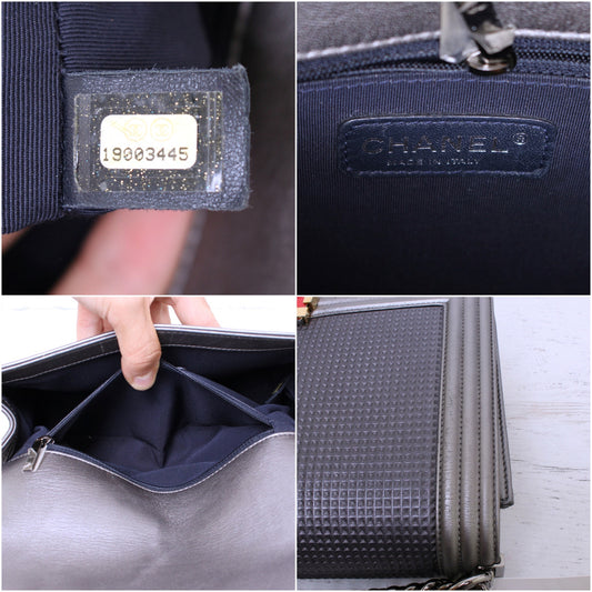 Chanel Boy Bag Cube Grey Lambskin Leather Shoulder Crossbody Purse A4572