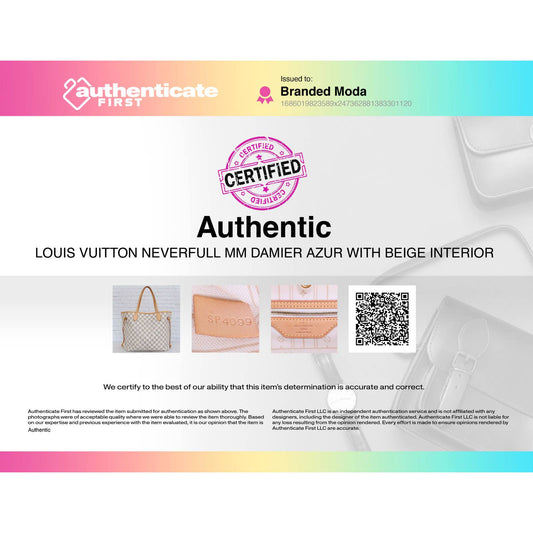 Louis Vuitton Neverfull MM Damier Azur Tote with Box & Dust Bag