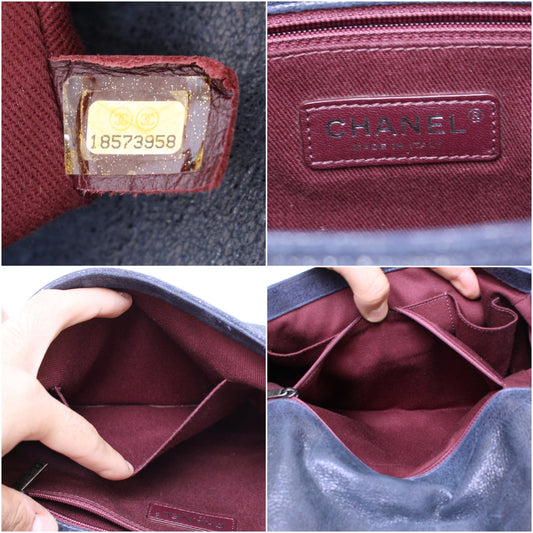 Chanel Boy Bag Navy Calfskin Leather Shoulder Crossbody Handbag Purse A4574