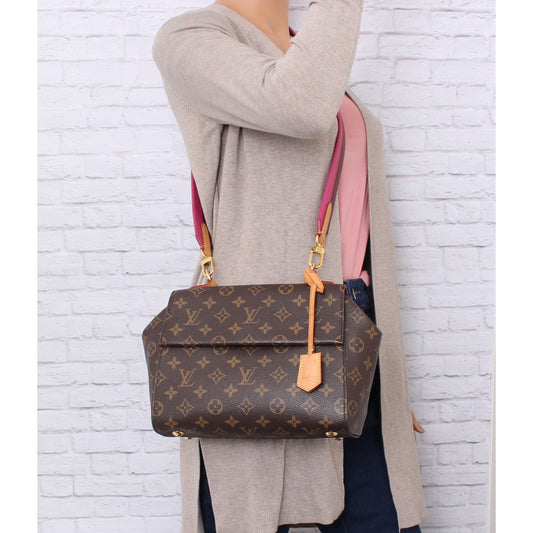 Louis Vuitton Cluny BB Monogram Crossbody Fuchsia Leather Strap Satchel