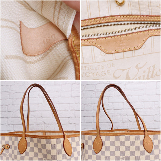 Louis Vuitton Neverfull MM Damier Azur Tote Shoulder Purse White Handbag A5147