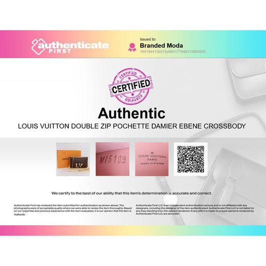 Louis Vuitton Double Zip Pochette Damier Ebene Crossbody Purse Chain