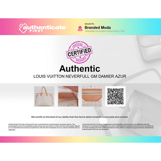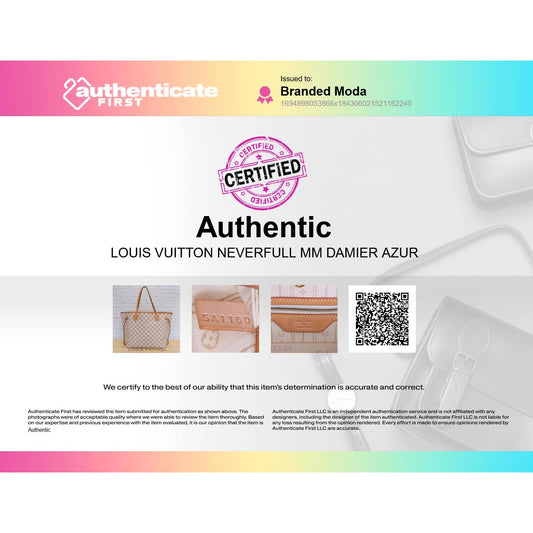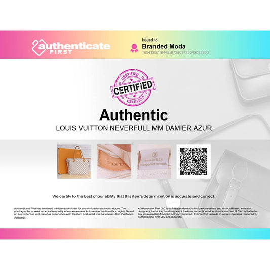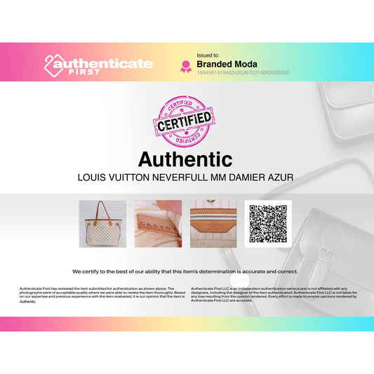 Louis Vuitton Neverfull MM Damier Azur Tote Shoulder Bag Dust Bag & Box