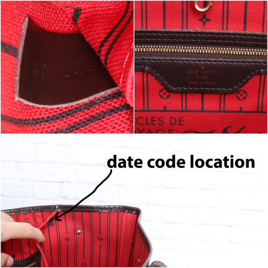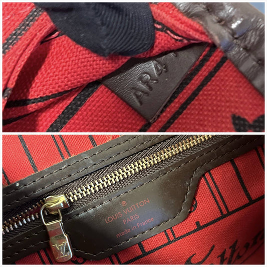 Louis Vuitton Neverfull MM Damier Ebene Tote Cherry Leather Shoulder