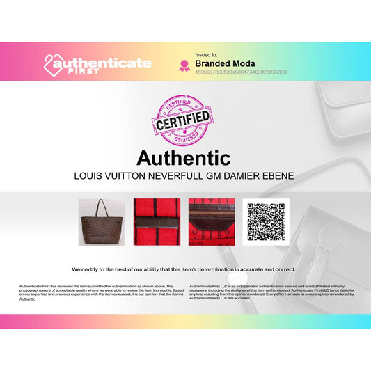 Louis Vuitton Neverfull GM Damier Ebene Large Tote Shoulder Bag Red LV