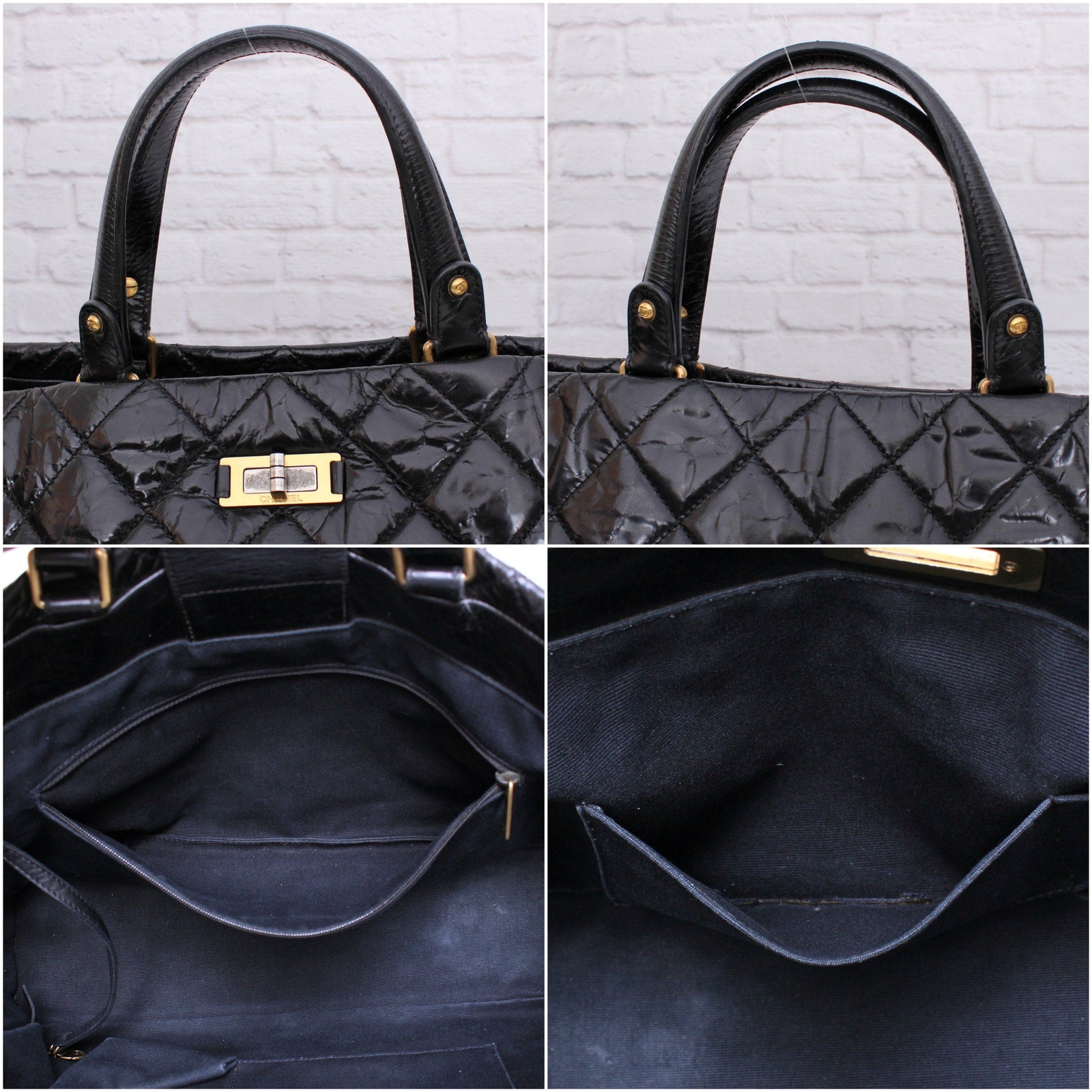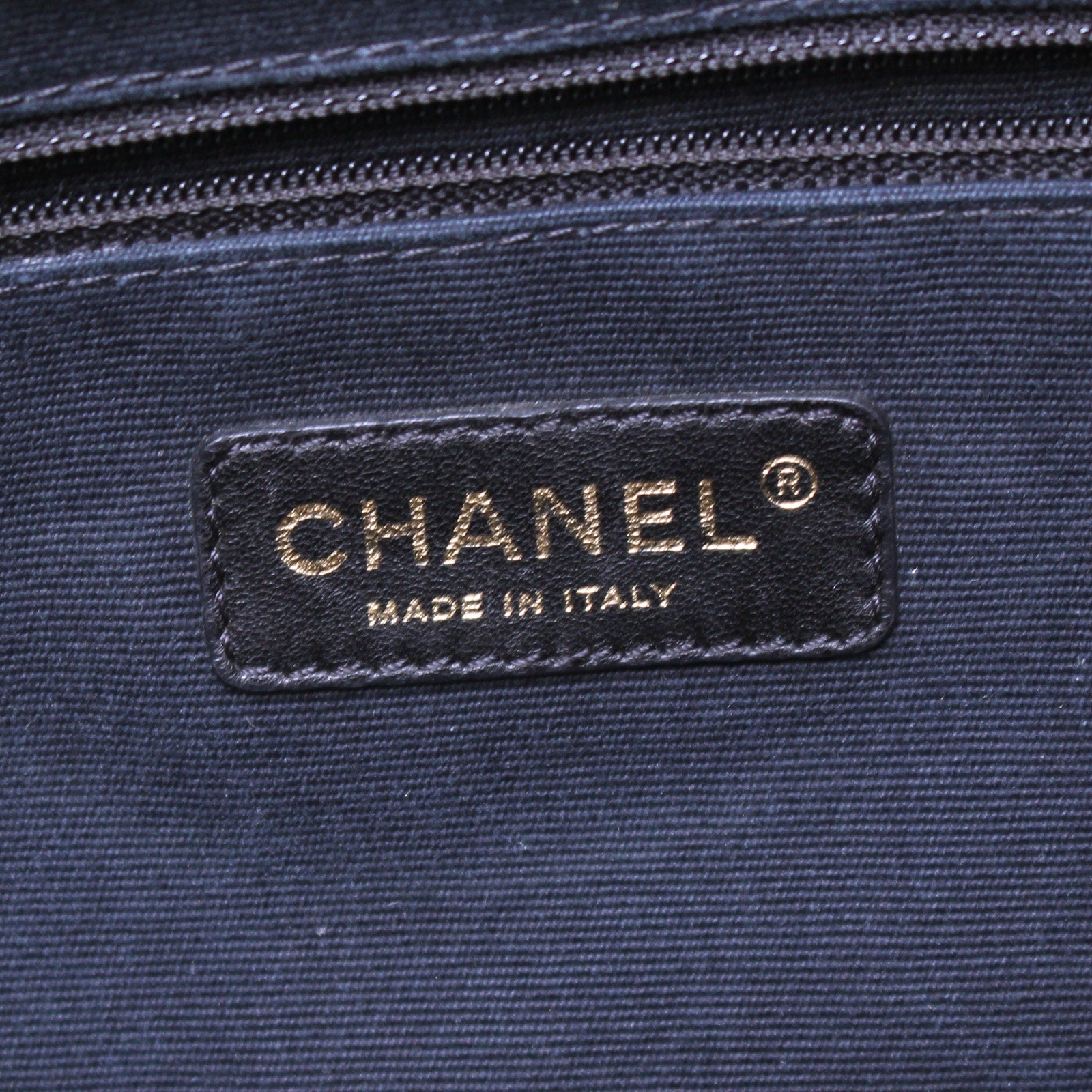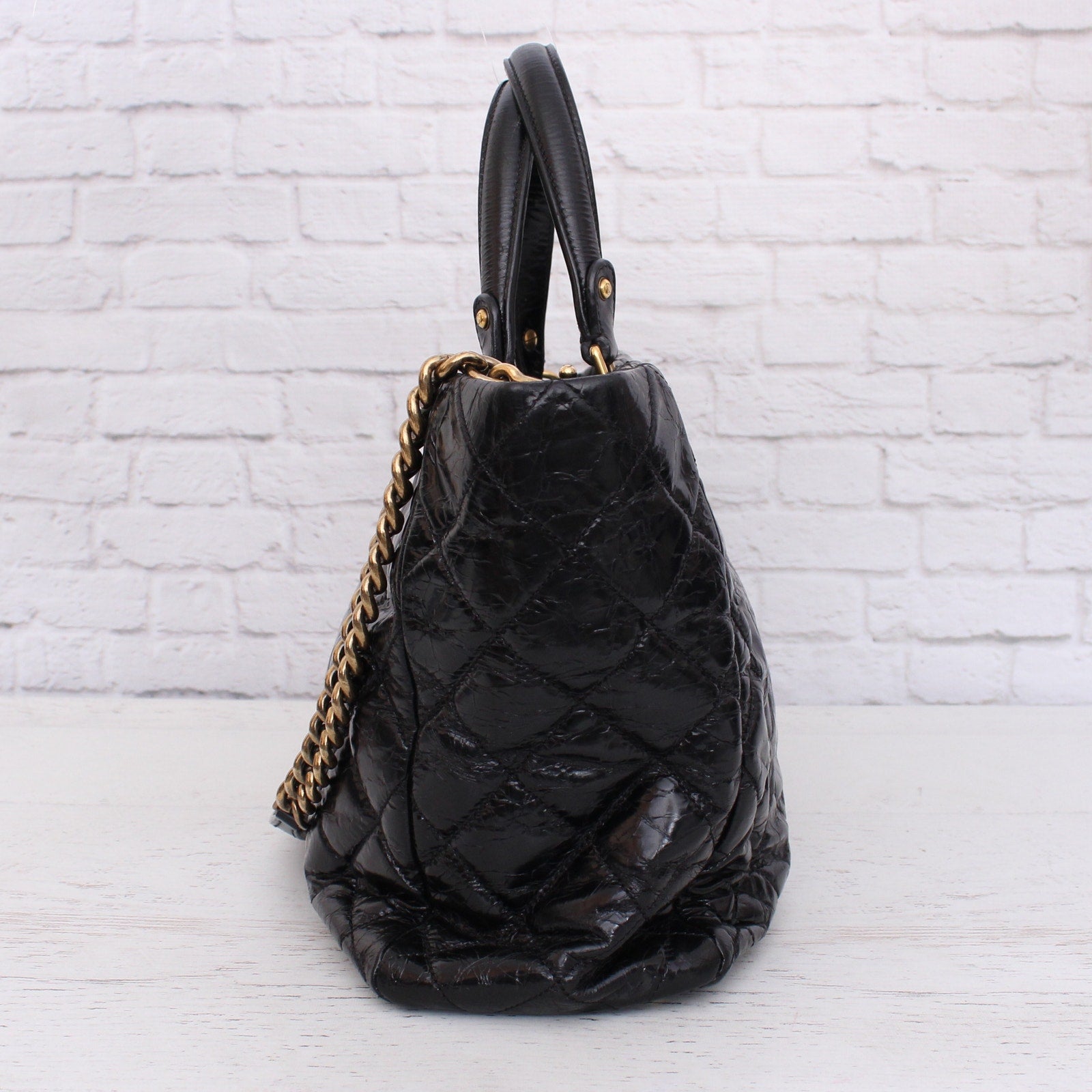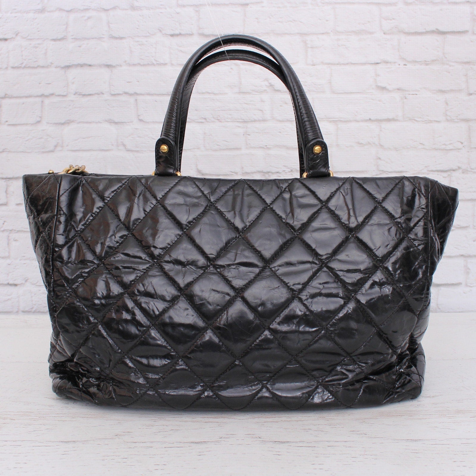 Chanel 2 Way Tote Black Glazed Calfskin Leather Shoulder Bag