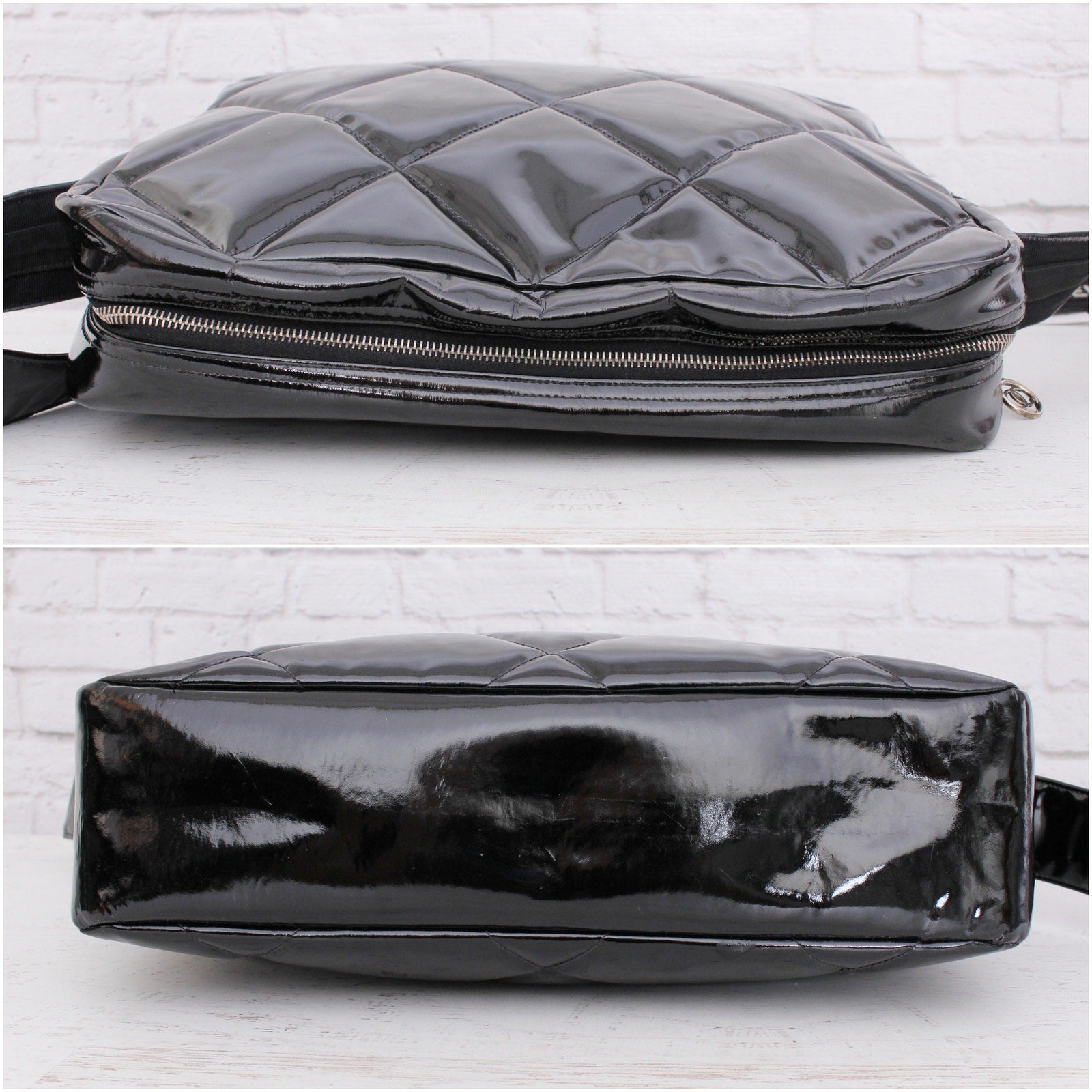 Chanel Black Patent Leather Camera Bag Shoulder Crossbody A4996