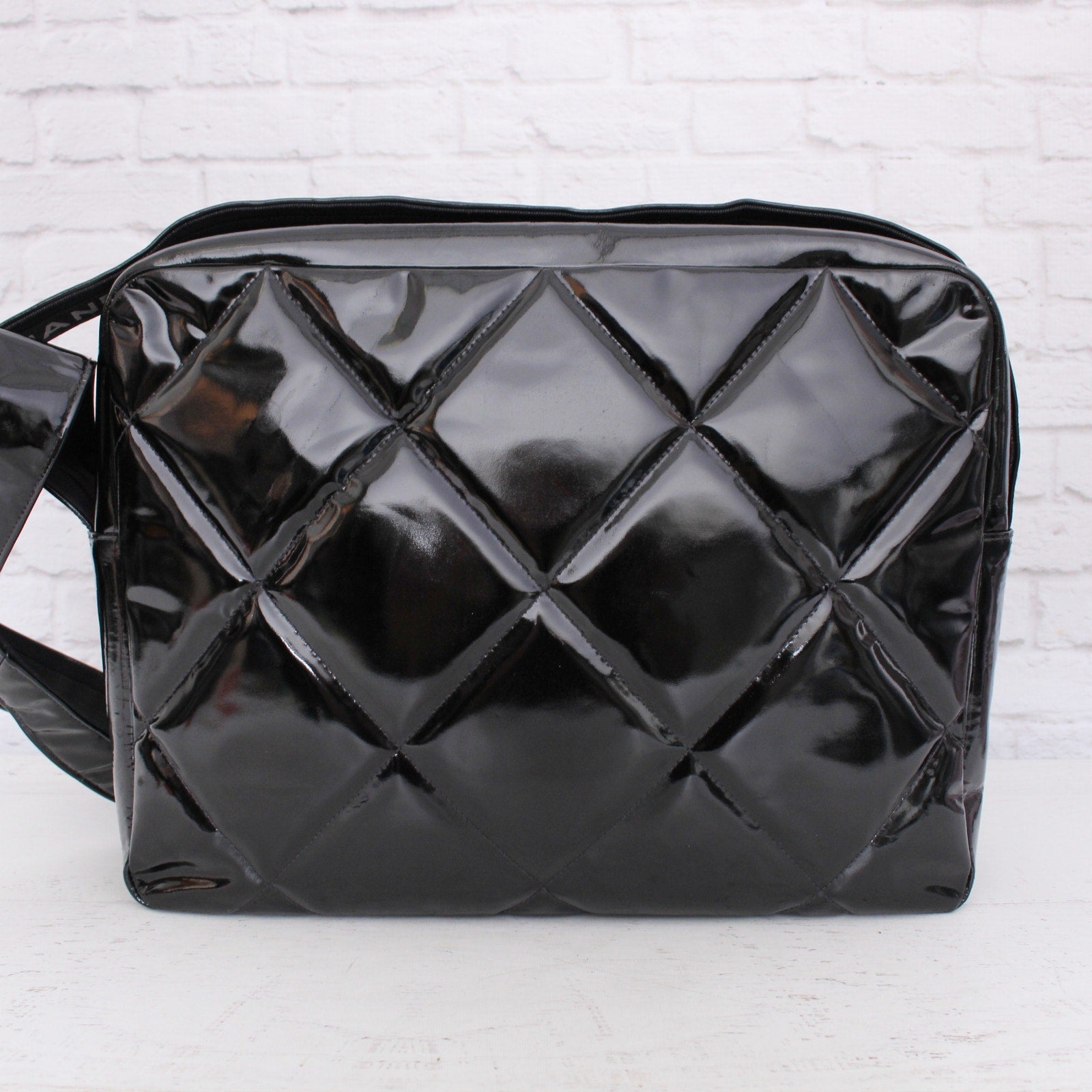 Chanel Black Patent Leather Camera Bag Shoulder and Crossbody Purse