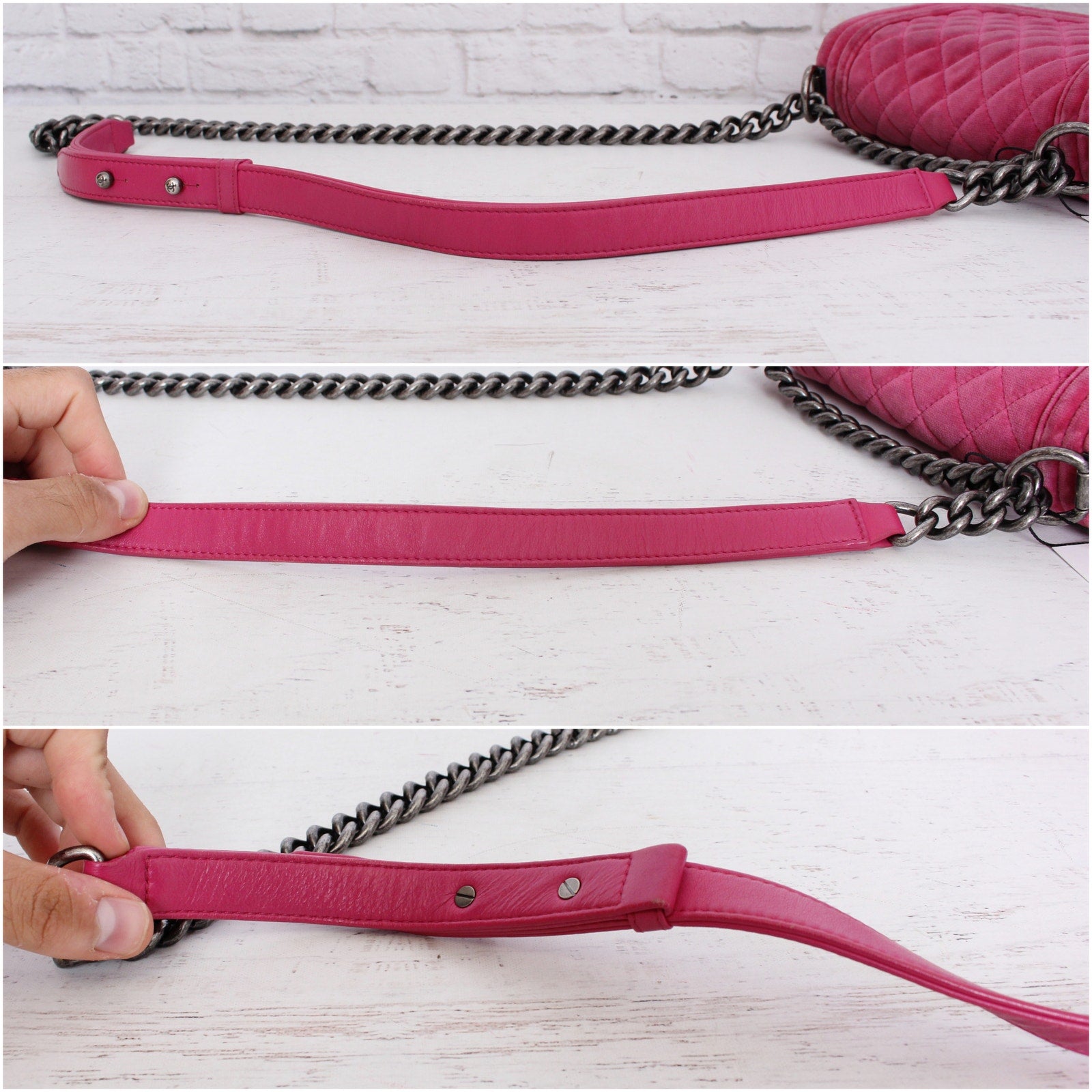 Chanel Boy Bag Pink Velour Crossbody and Shoulder Bag Purse Handbag A5365