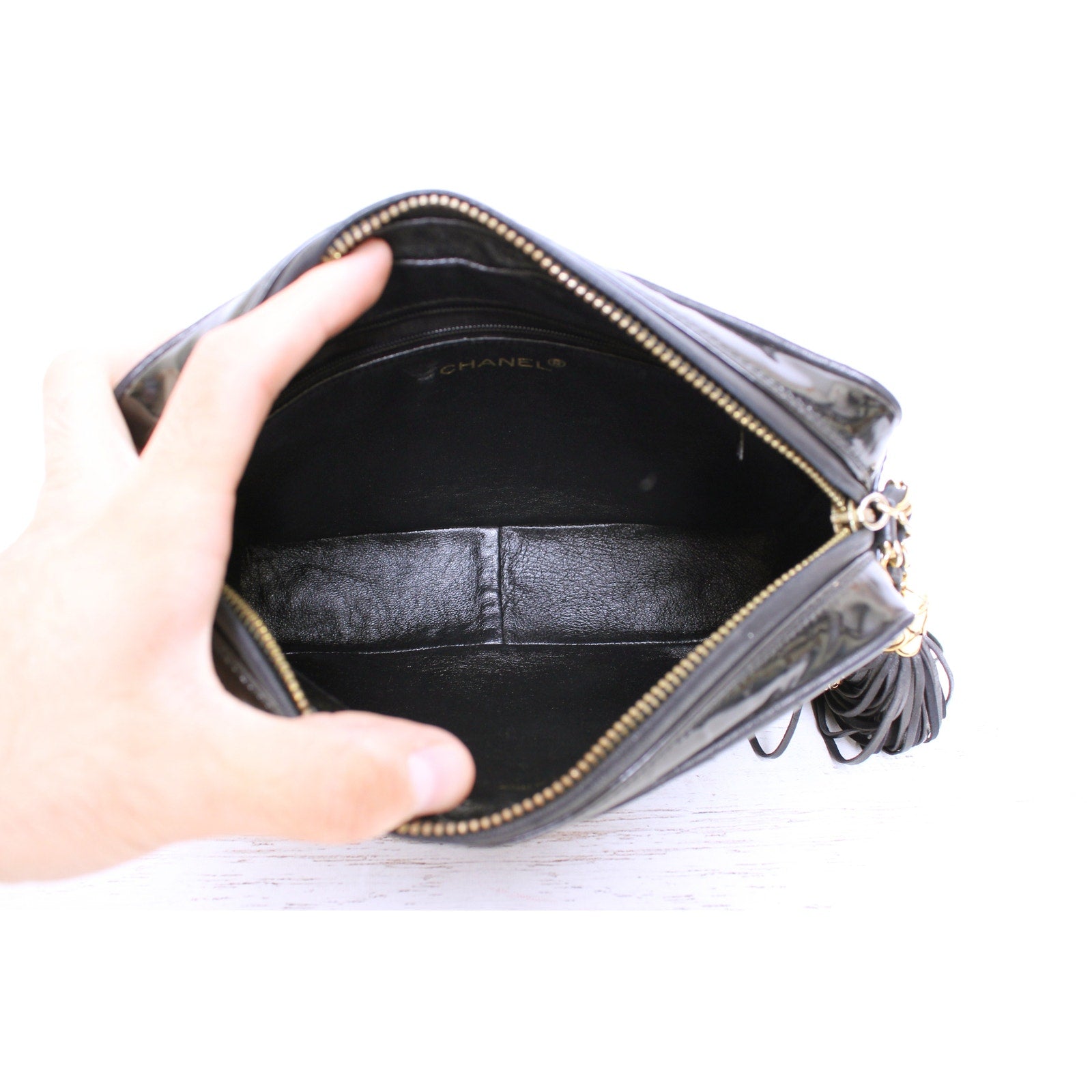 Chanel CC Black Patent Leather Camera Bag Shoulder Crossbody Purse A4959