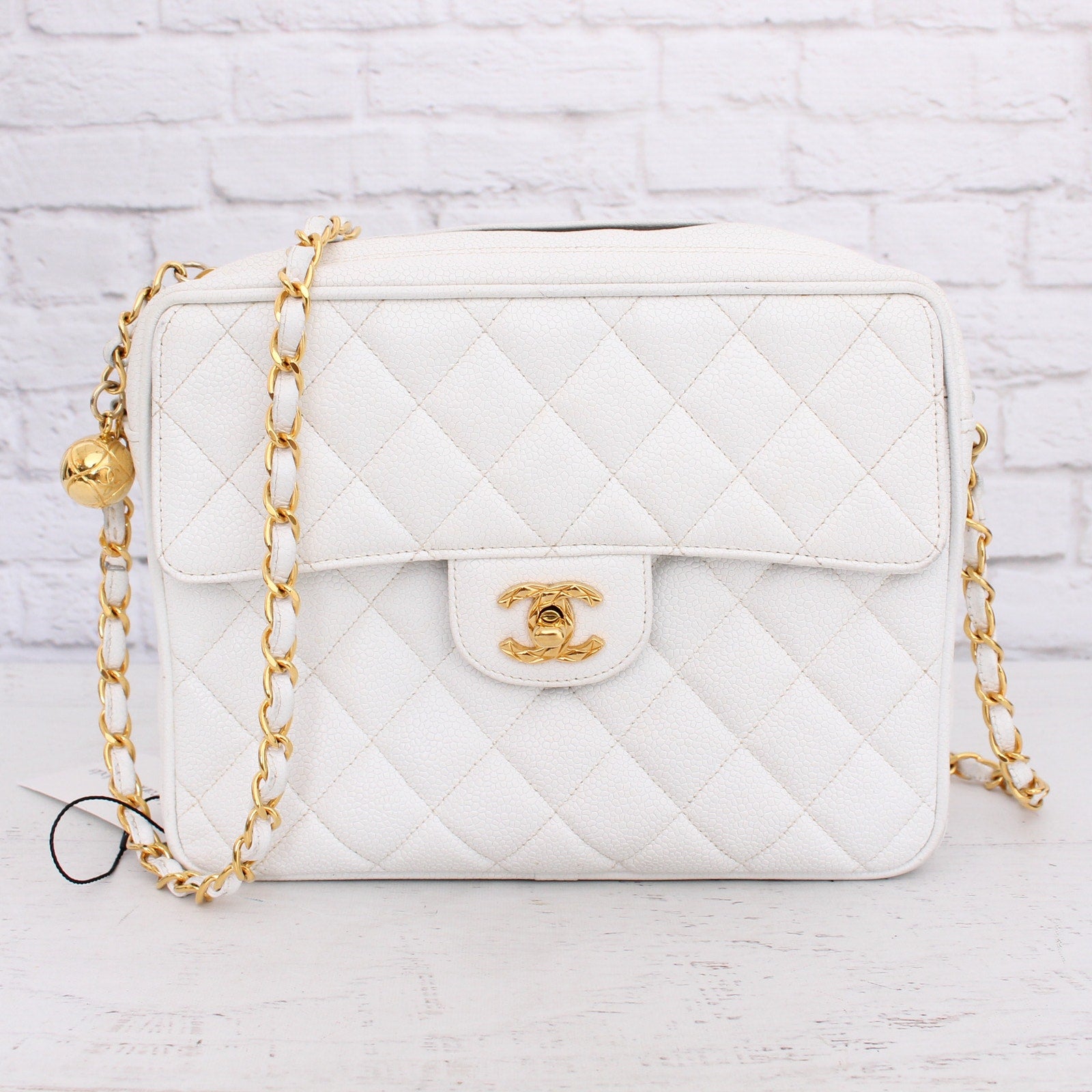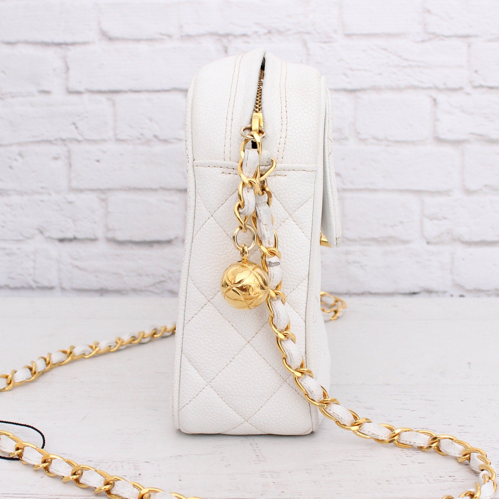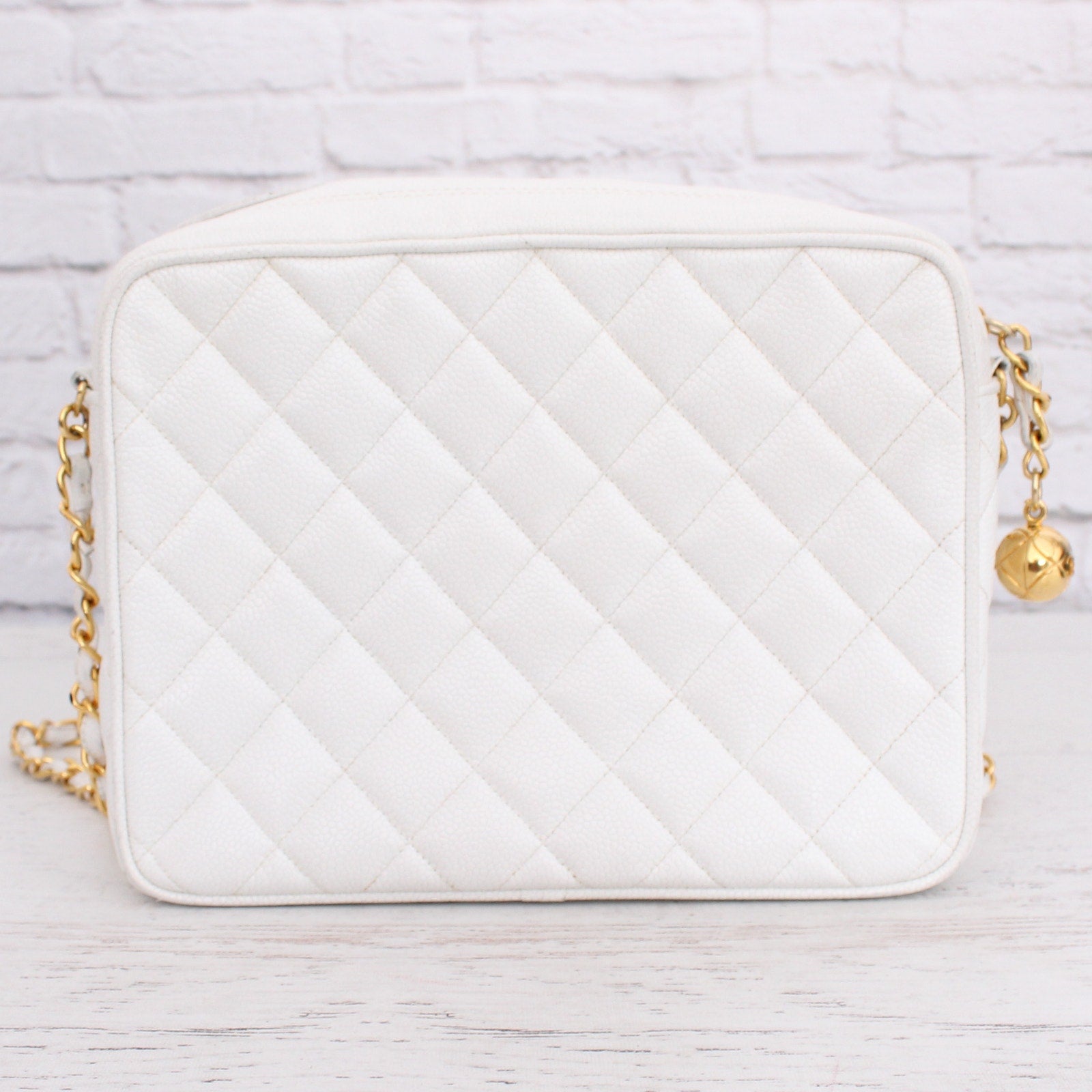 Chanel CC Camera Bag White Caviar Leather Shoulder Handbag A4730