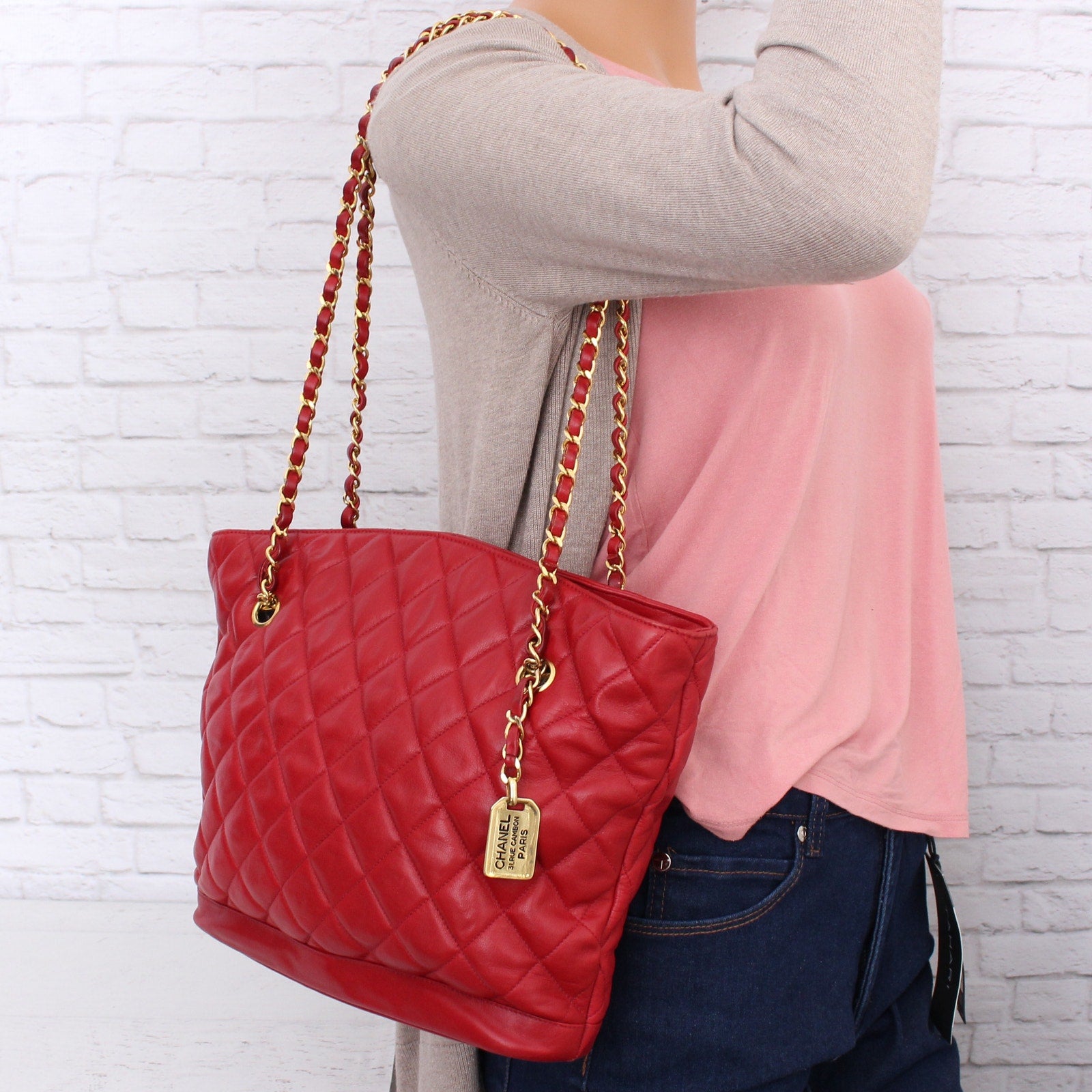 Chanel Chain Tote Red Lambskin Leather Shoulder Bag Handbag Purse A4604