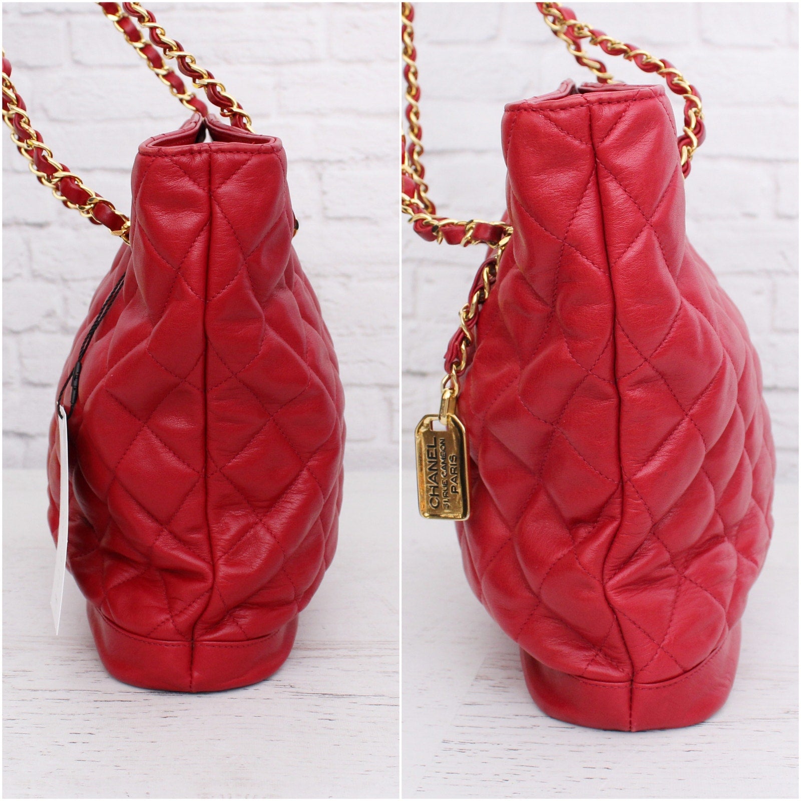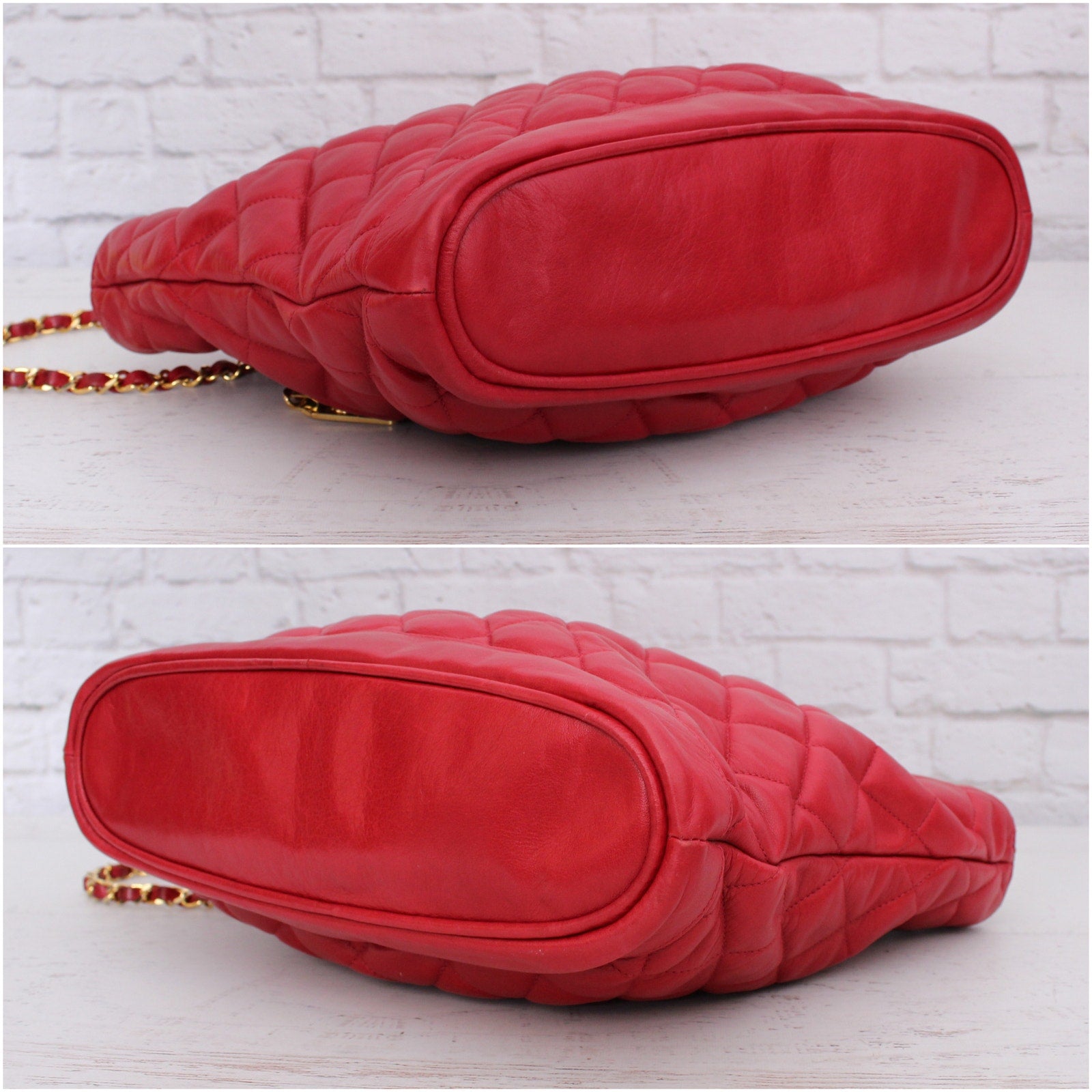 Chanel Chain Tote Red Lambskin Chain Shoulder Tote
