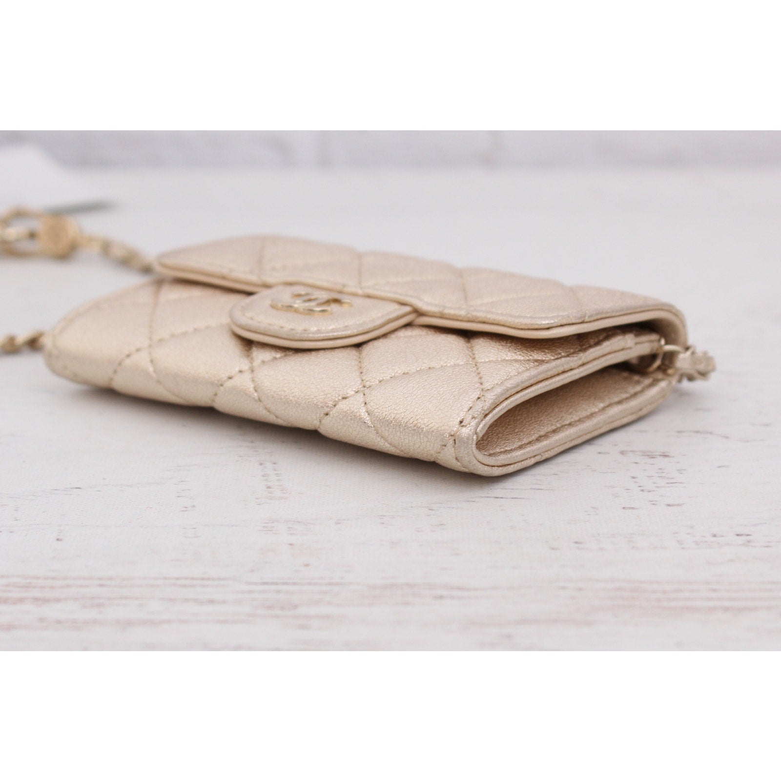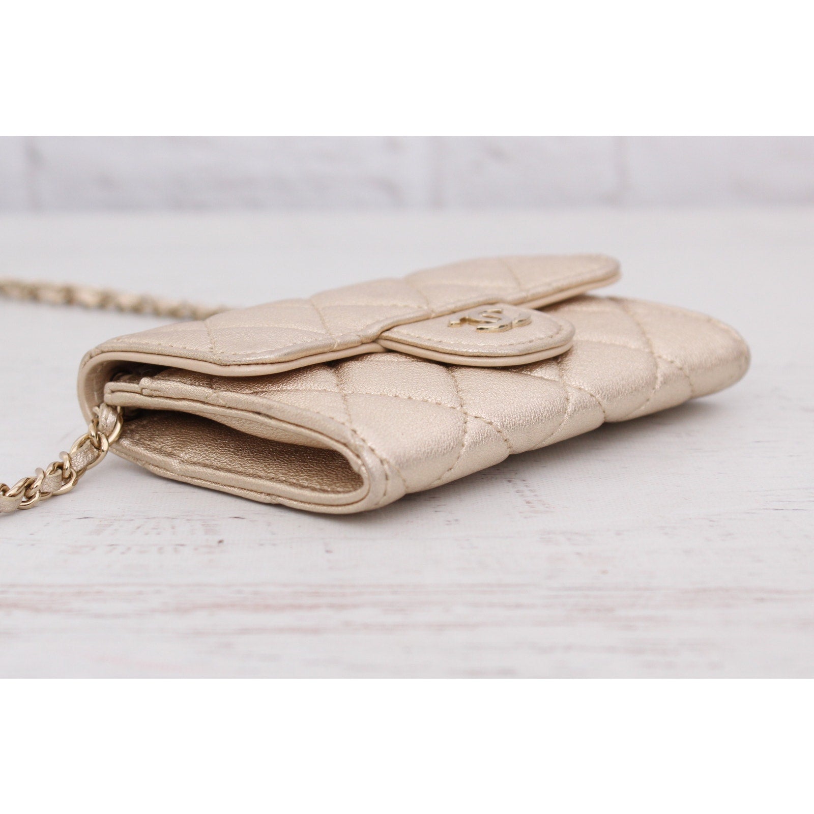 Chanel Classic Single Flap Gold Lambskin Leather Shoulder and Crossbody Purse