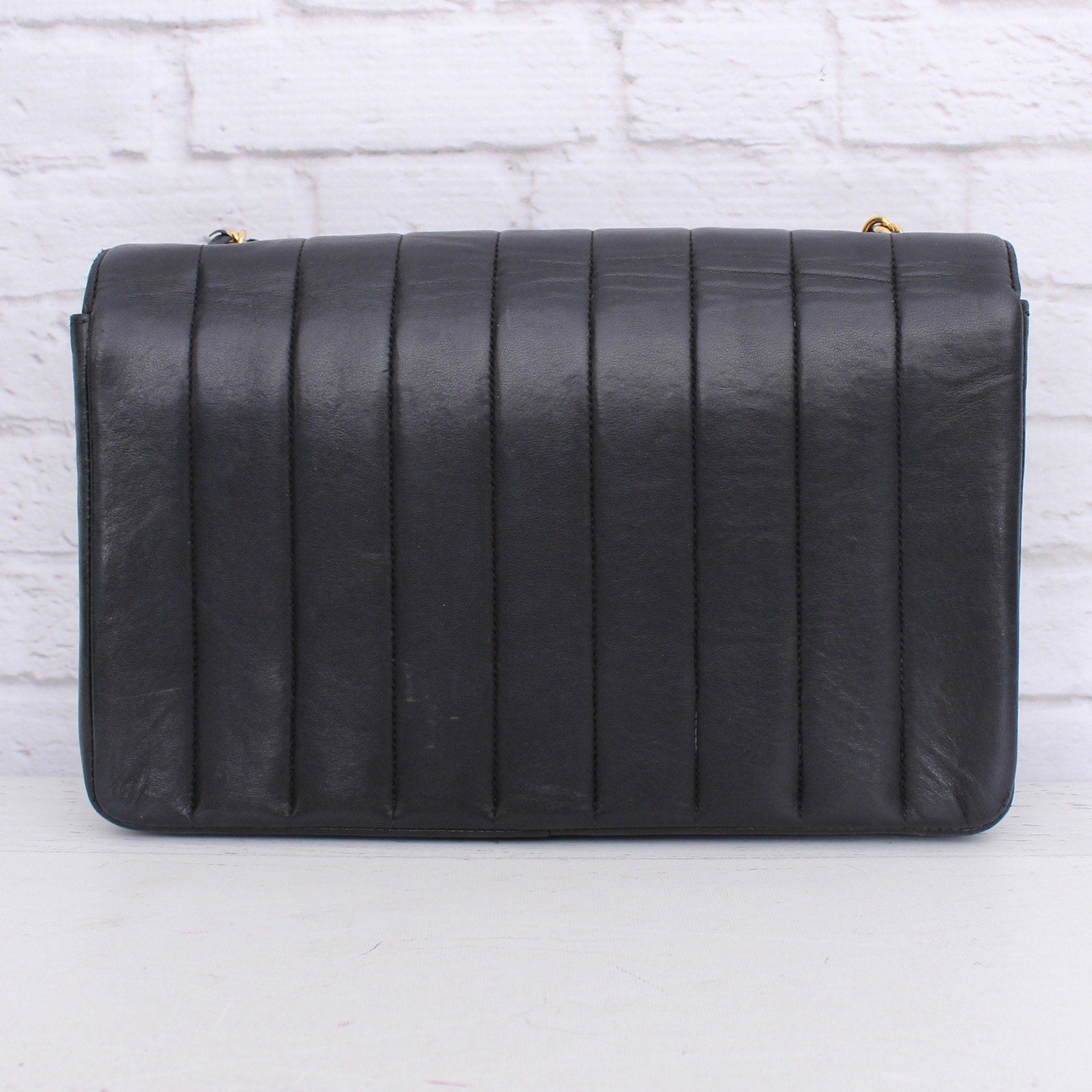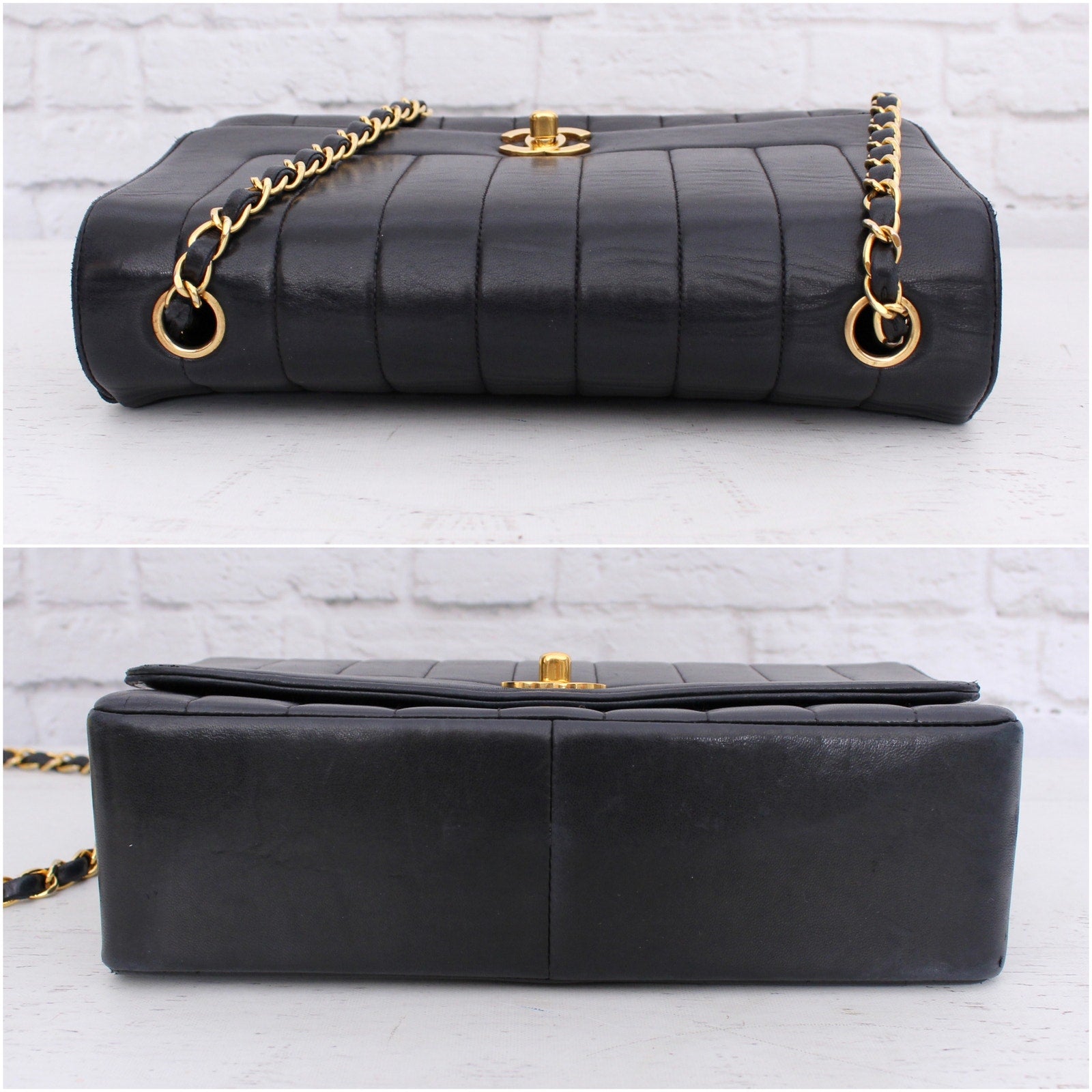 Chanel Diana Vertical Stitch Flap Black Lambskin Crossbody and Shoulder Purse