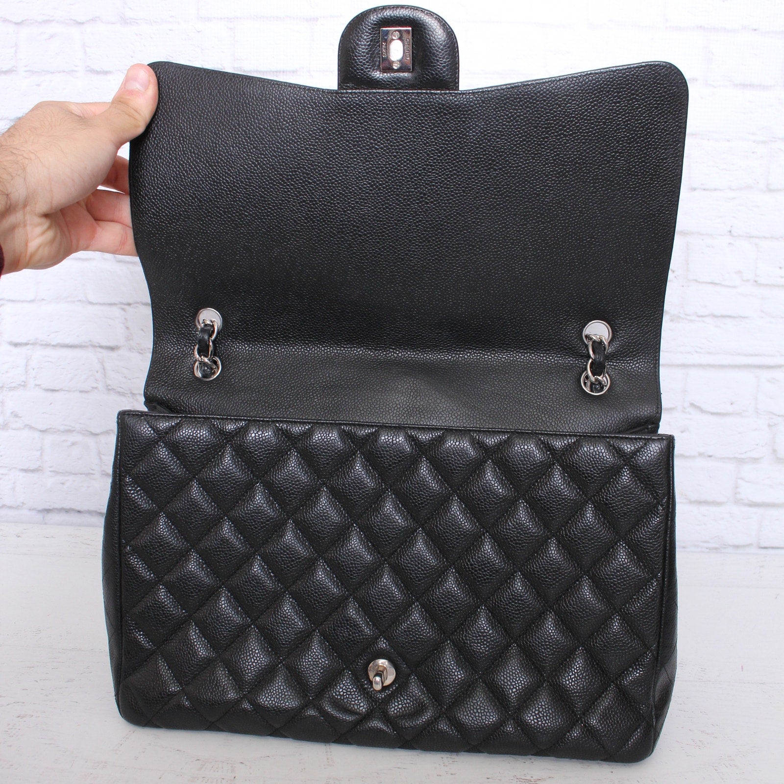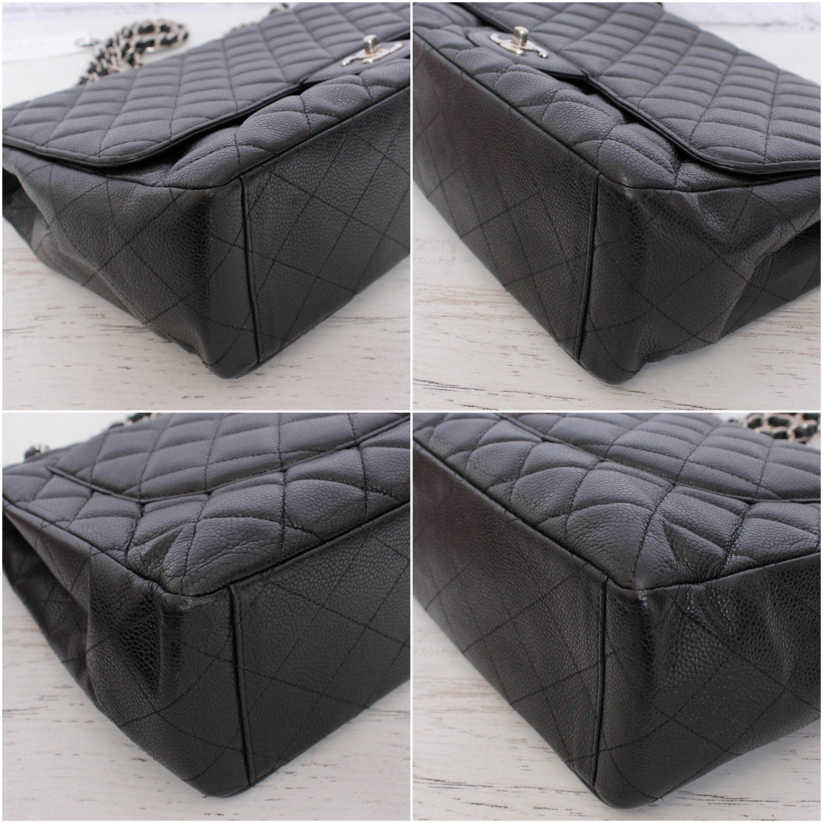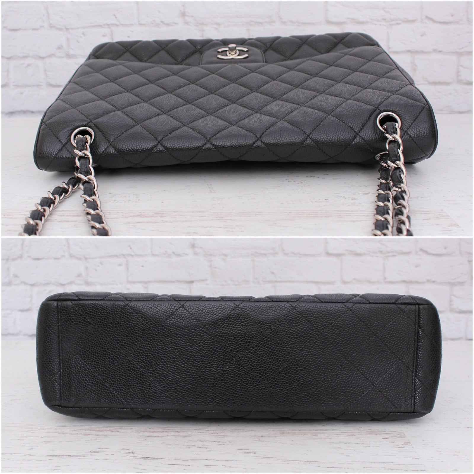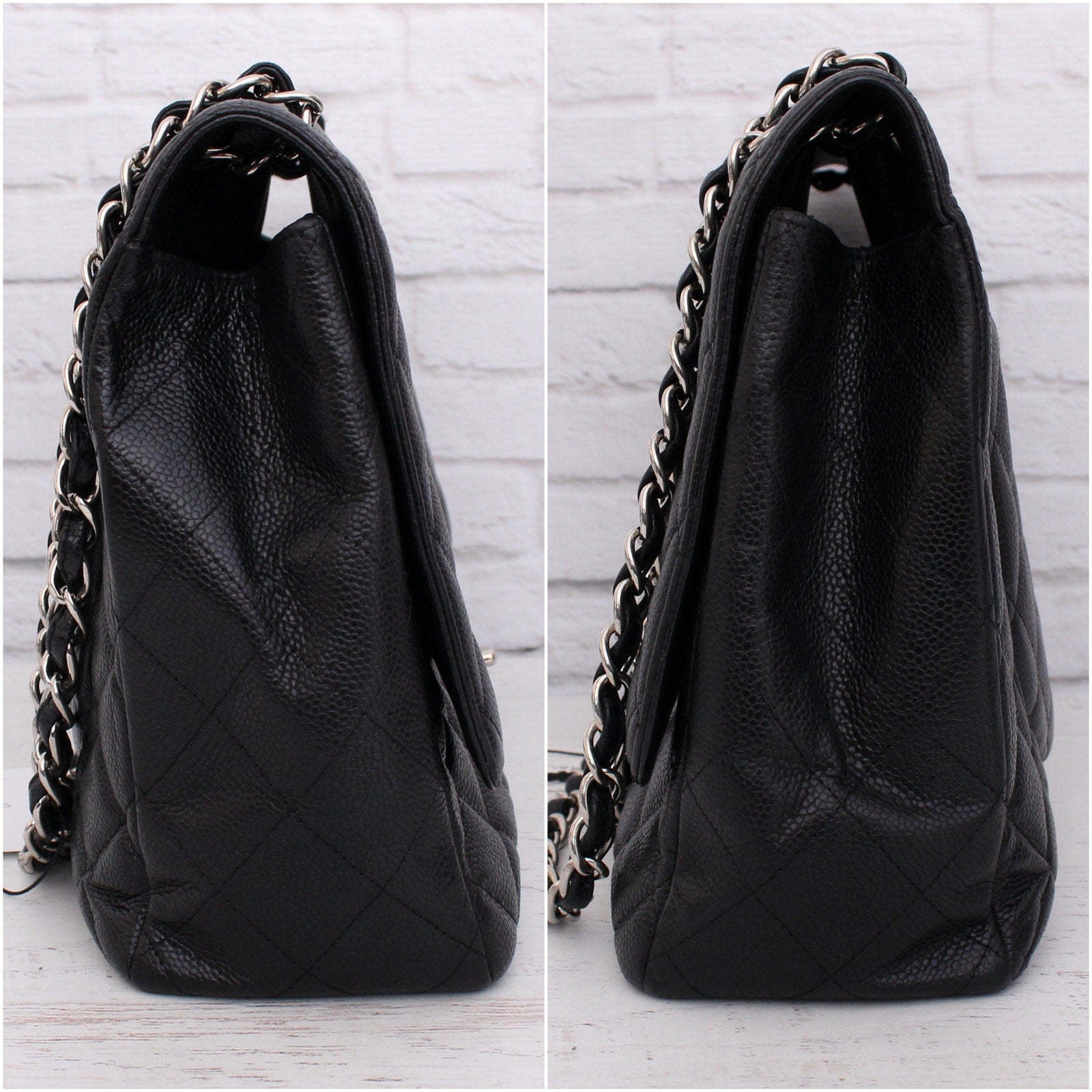 Chanel Jumbo Classic Single Flap Black Caviar Leather Shoulder Crossbody A4760