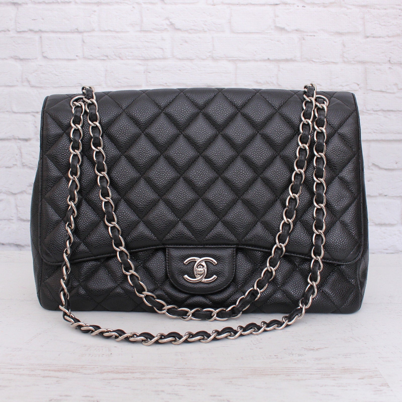 Chanel Jumbo Classic Single Flap Black Caviar Leather Shoulder and Crossbody Purse