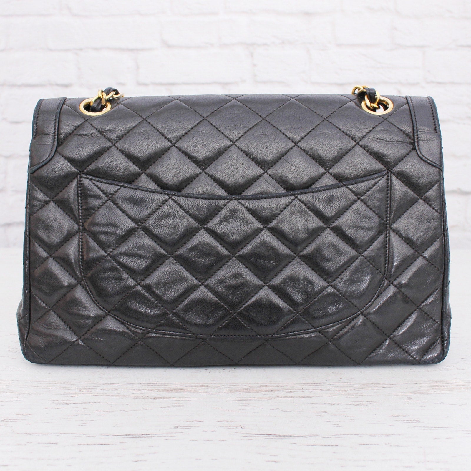 Chanel Paris Limited Two Tone Double Flap Quilted Black Lambskin Shoulder Bag
