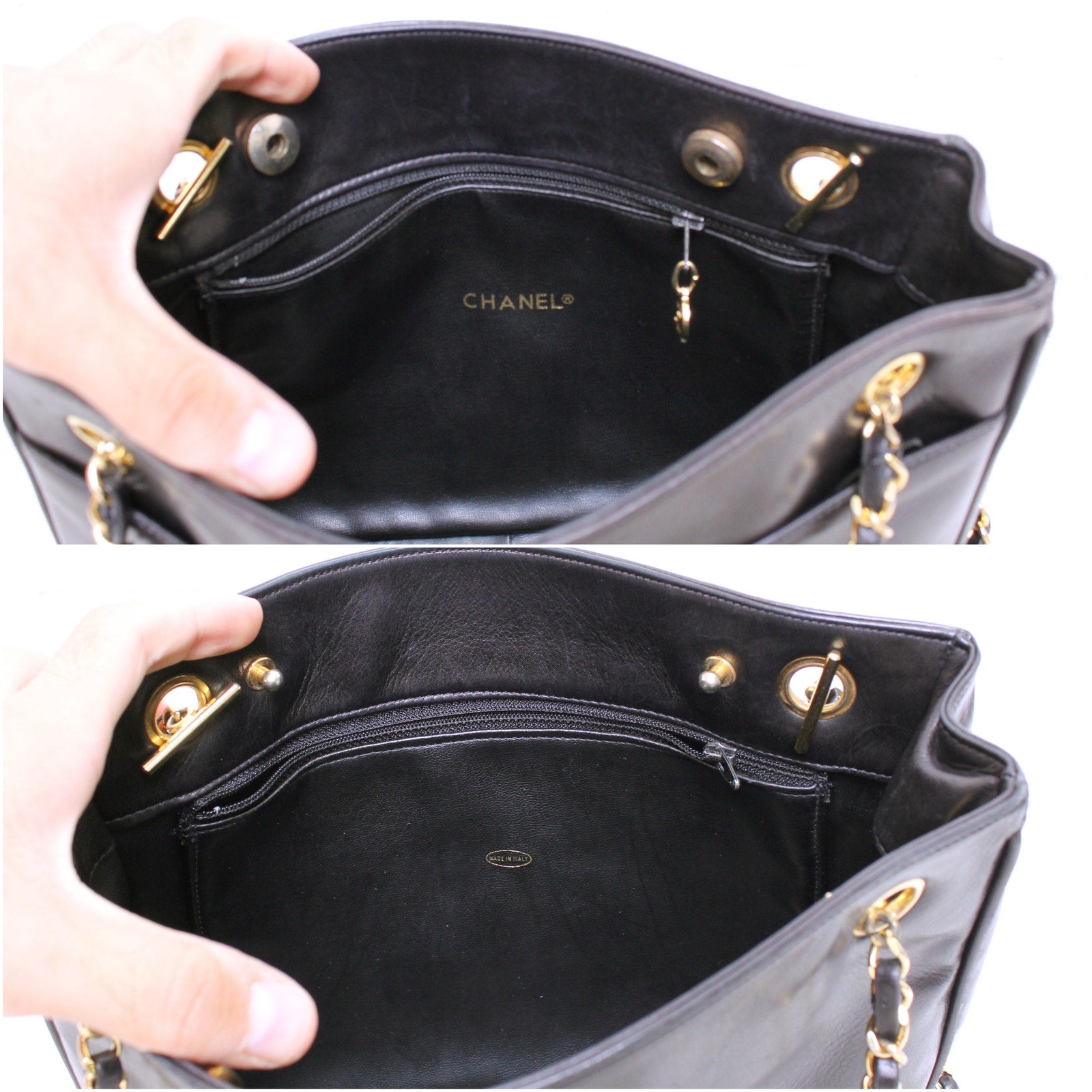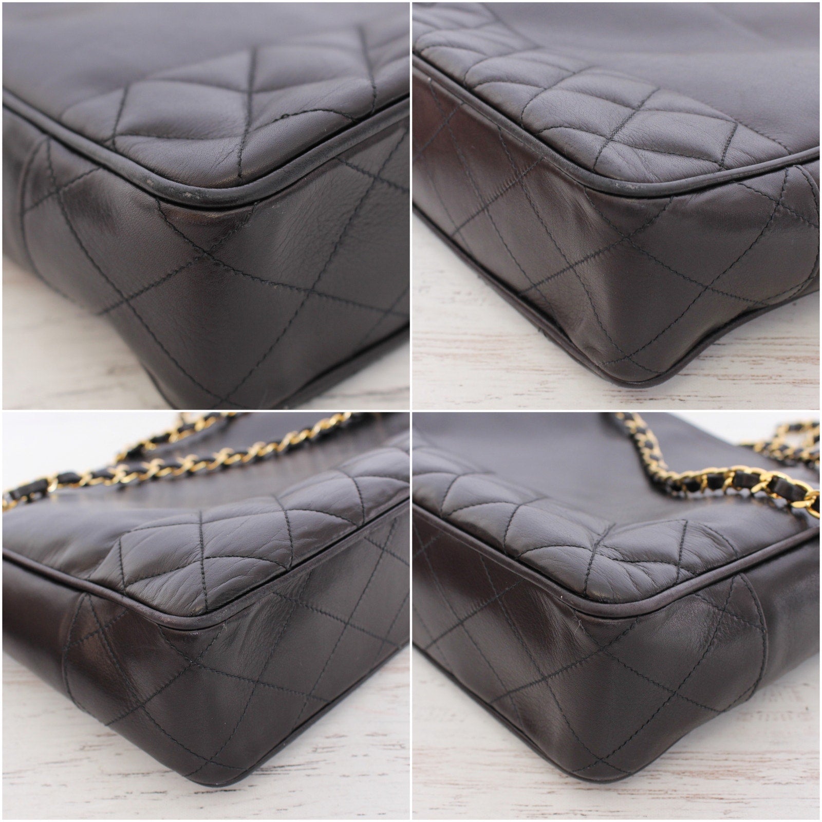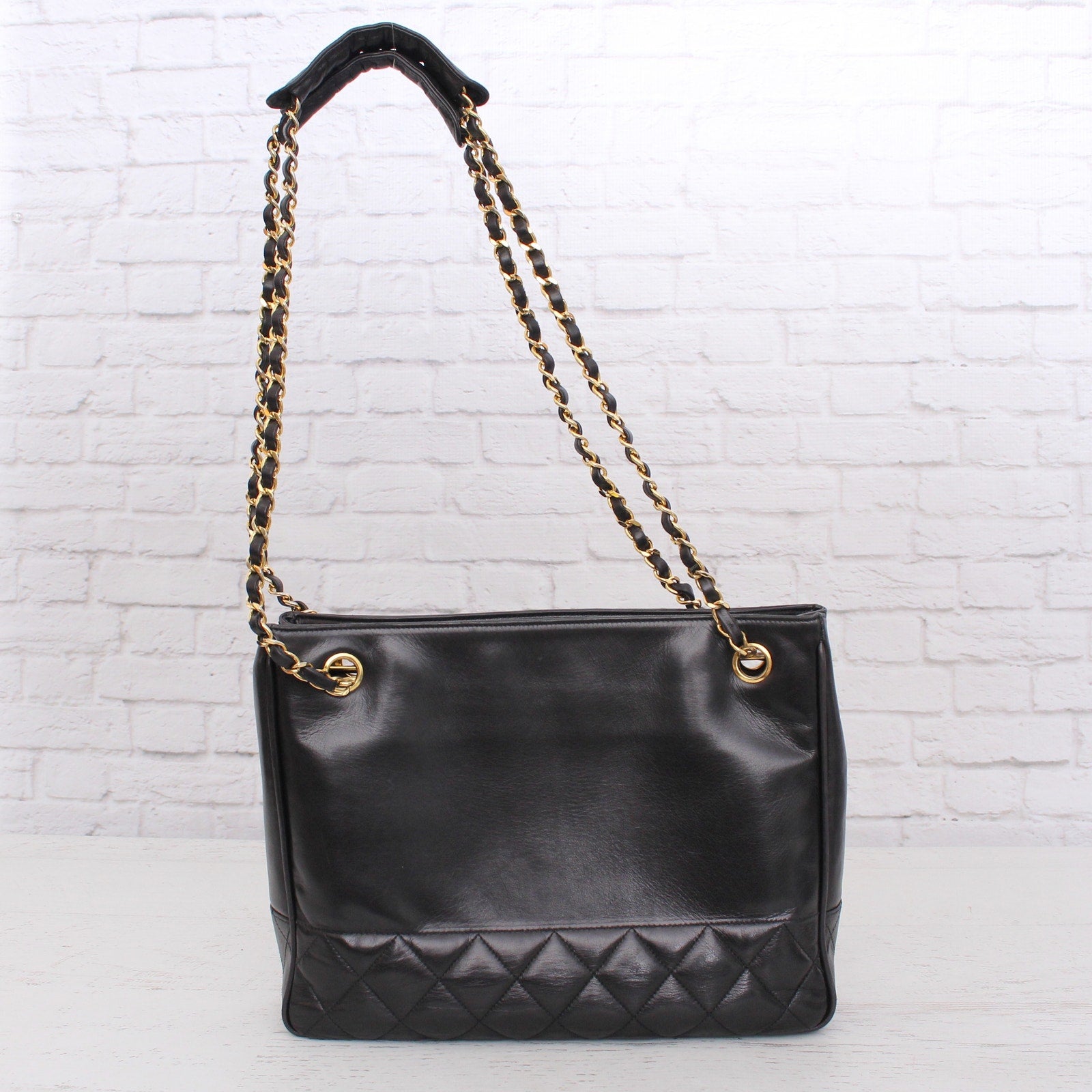 Chanel Quilted Black Lambskin Chain Tote Shoulder Purse
