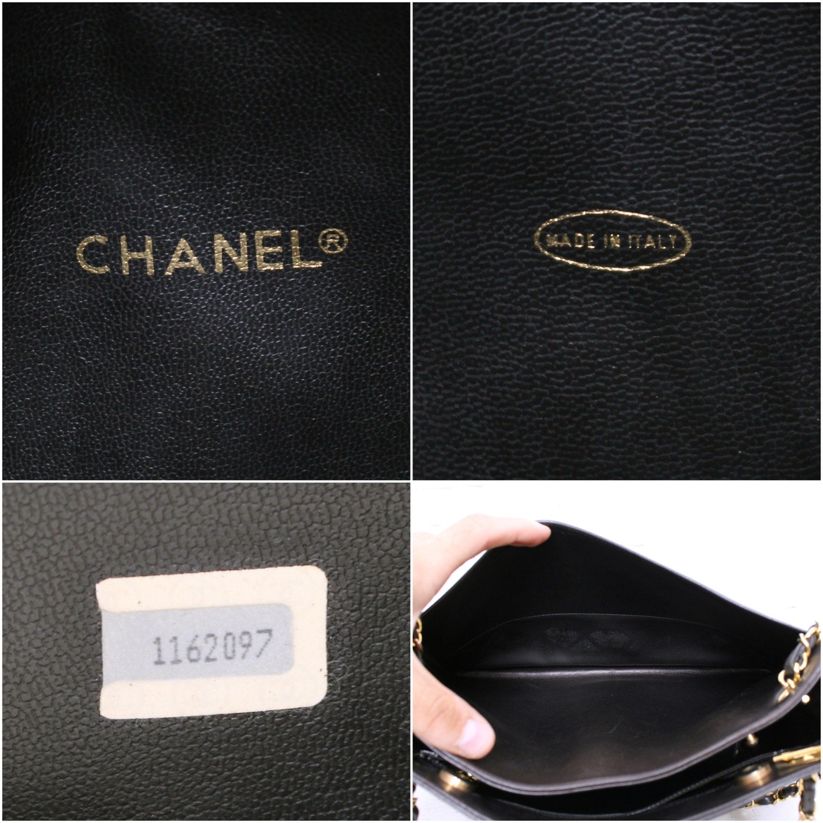 Chanel Quilted Black Lambskin Chain Tote Leather Shoulder Handbag Purse A5086