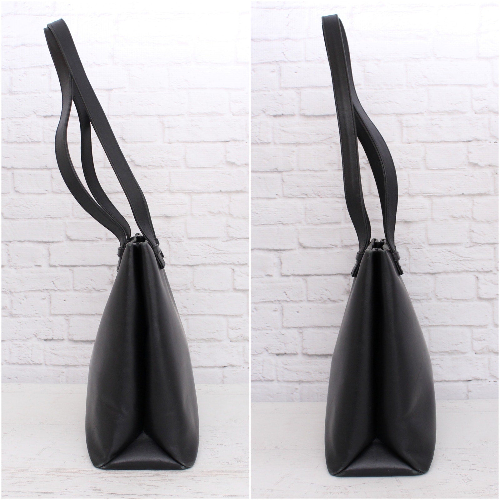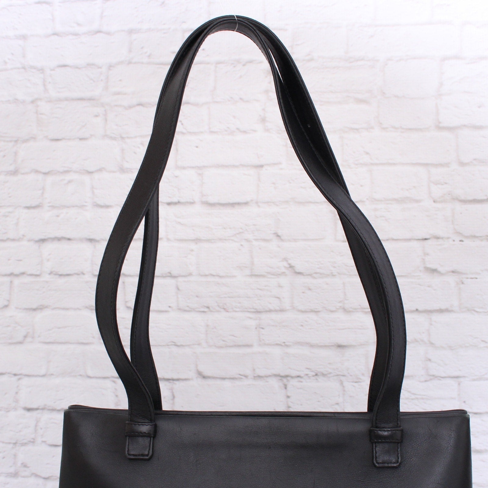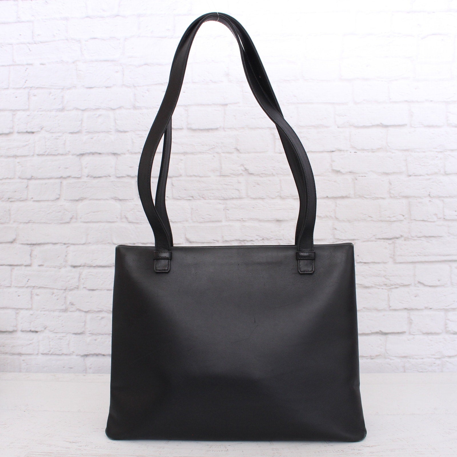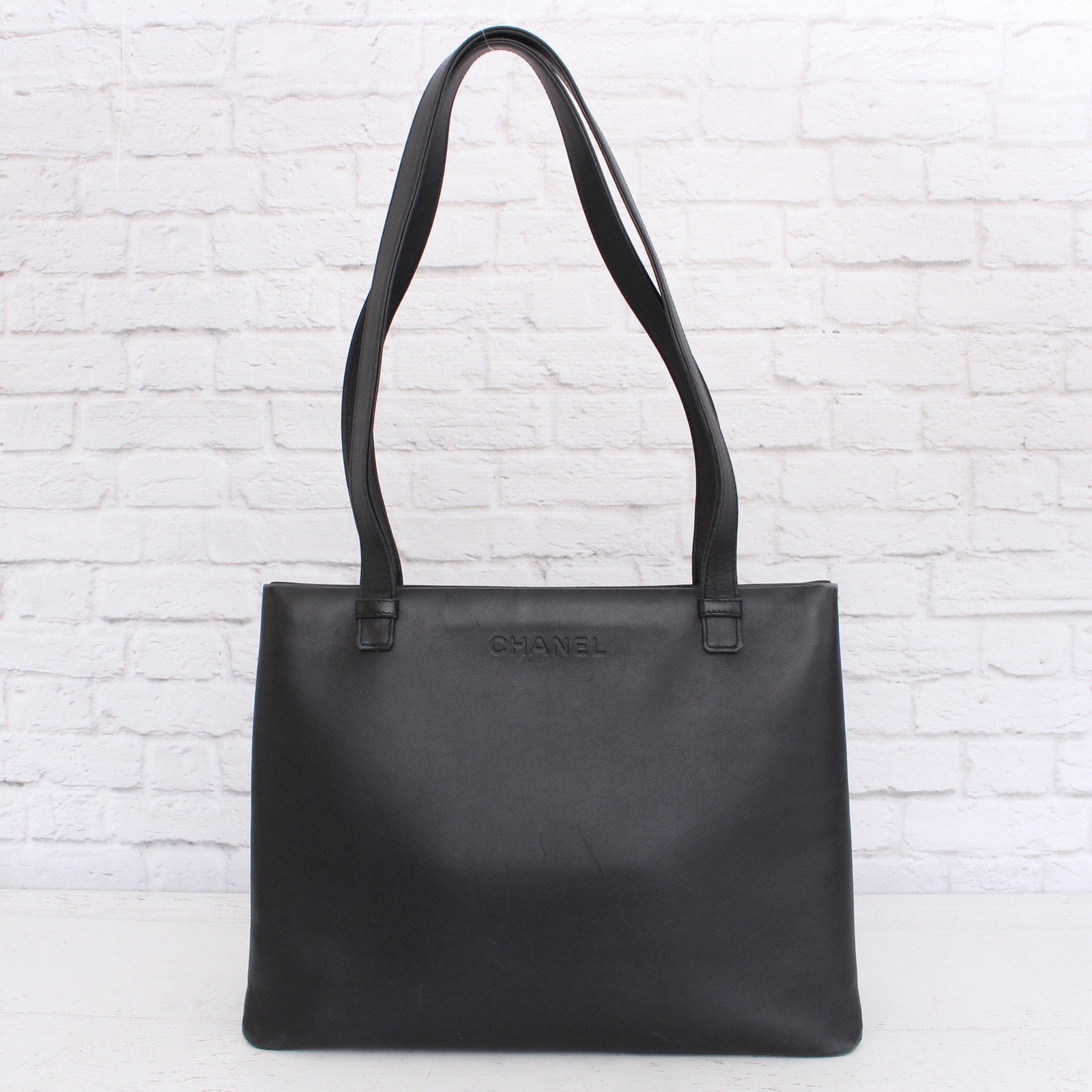 Chanel Tote Bag Black Leather Shoulder Handbag Purse A3587