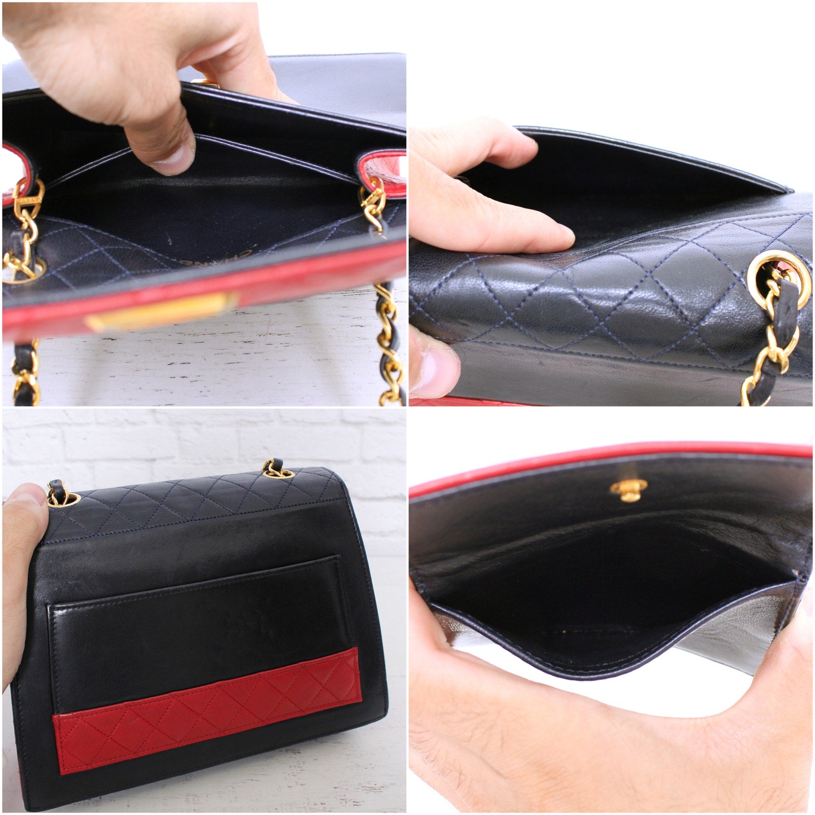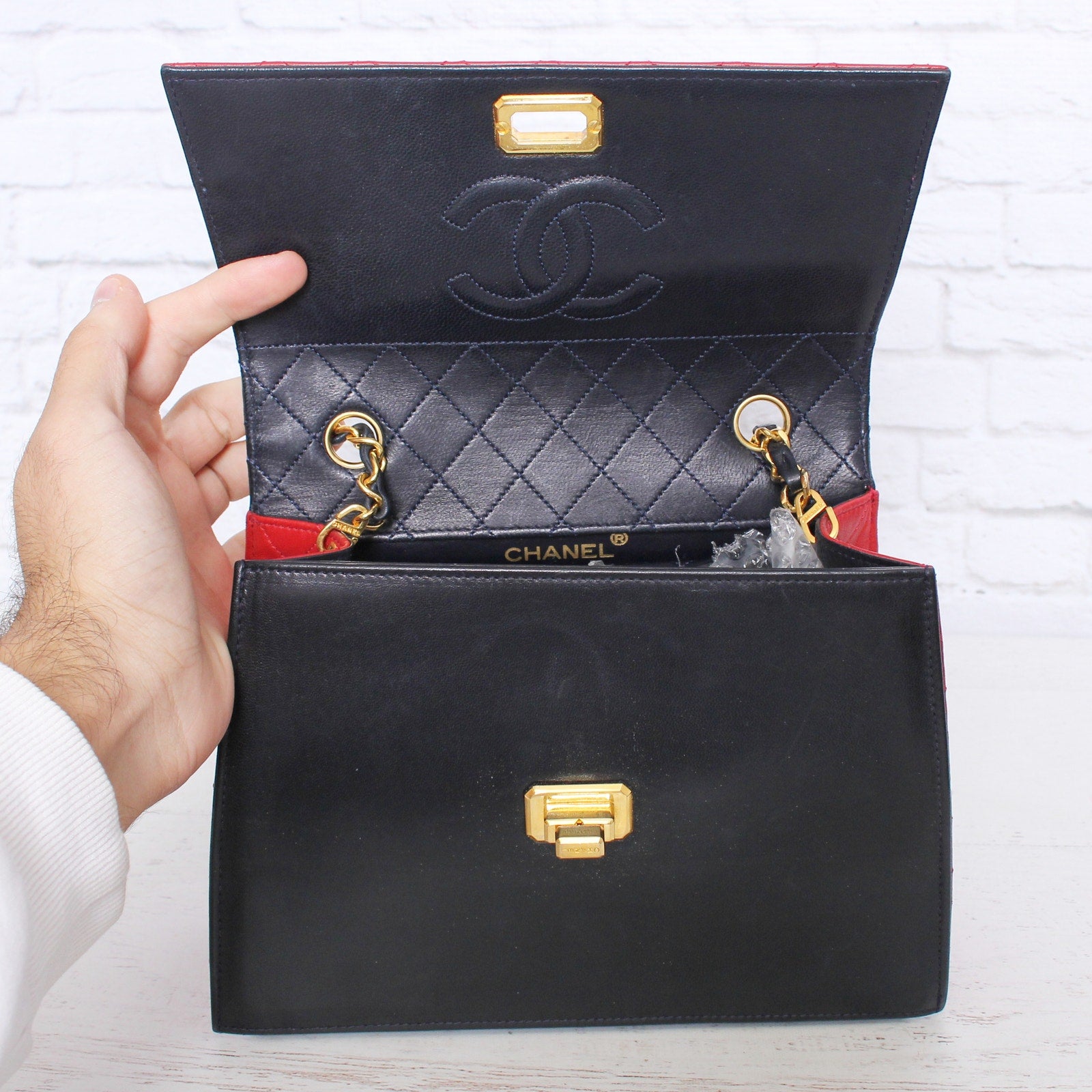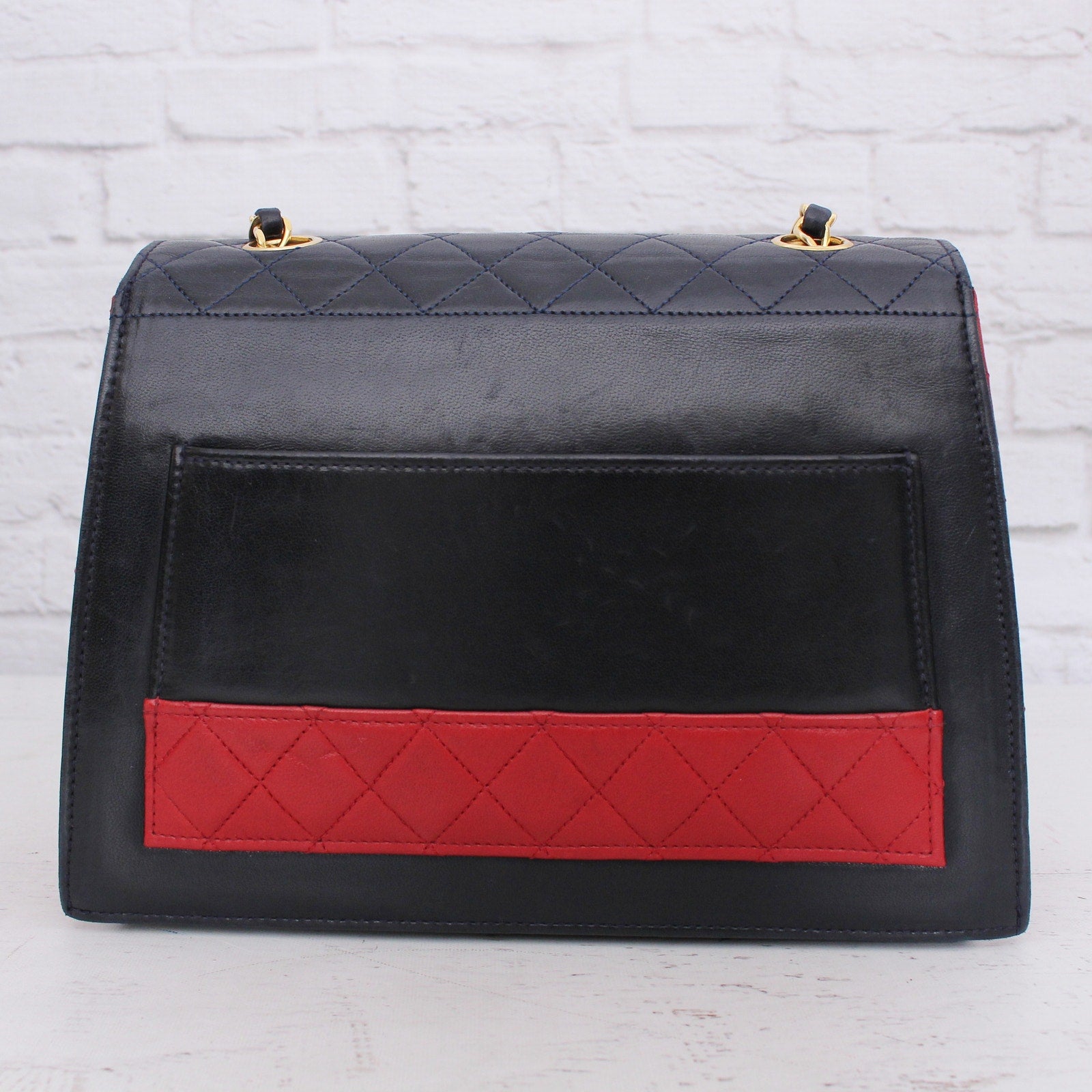 Chanel Trapezoid Flap Bag Two Tone Lambskin Leather Shoulder and Crossbody Purse