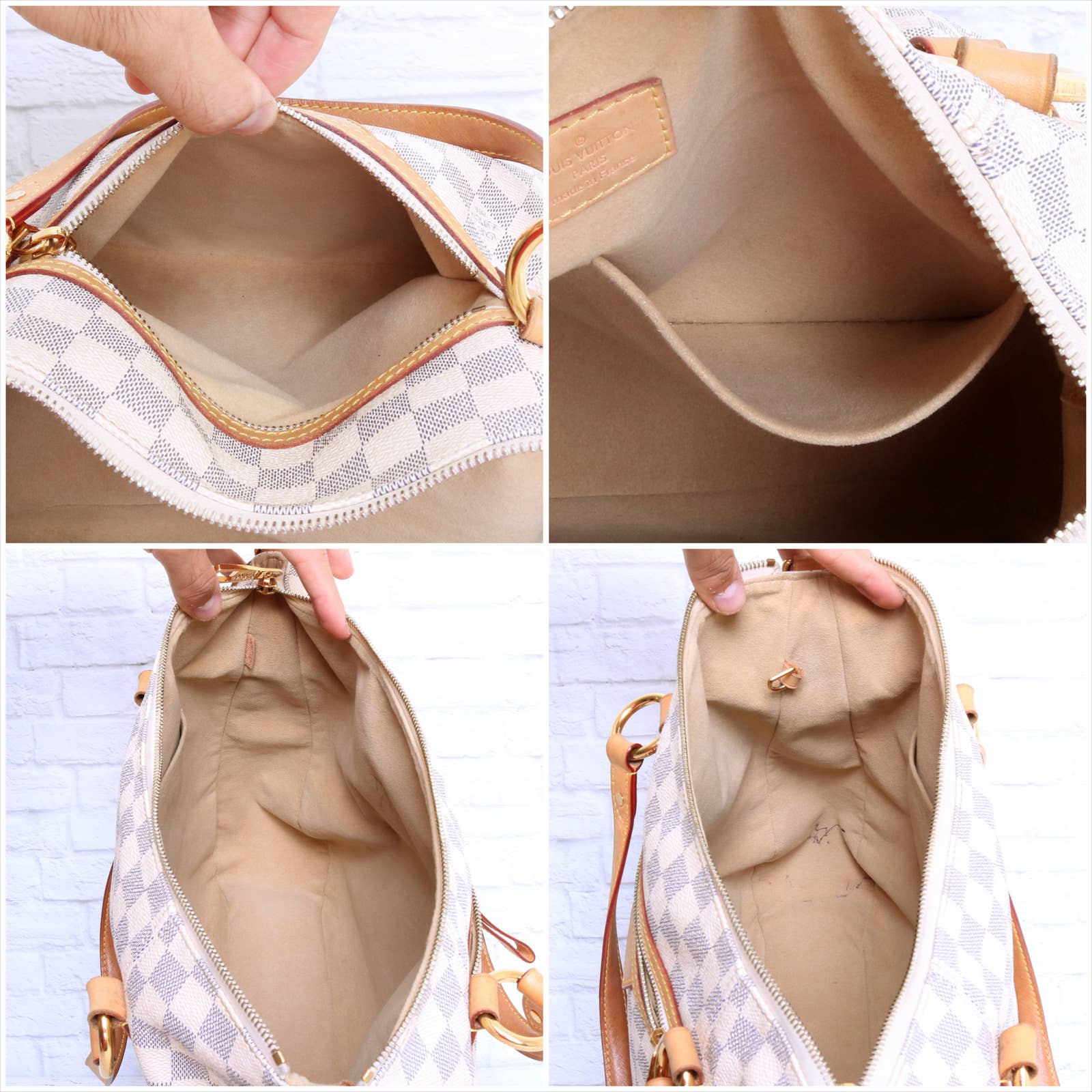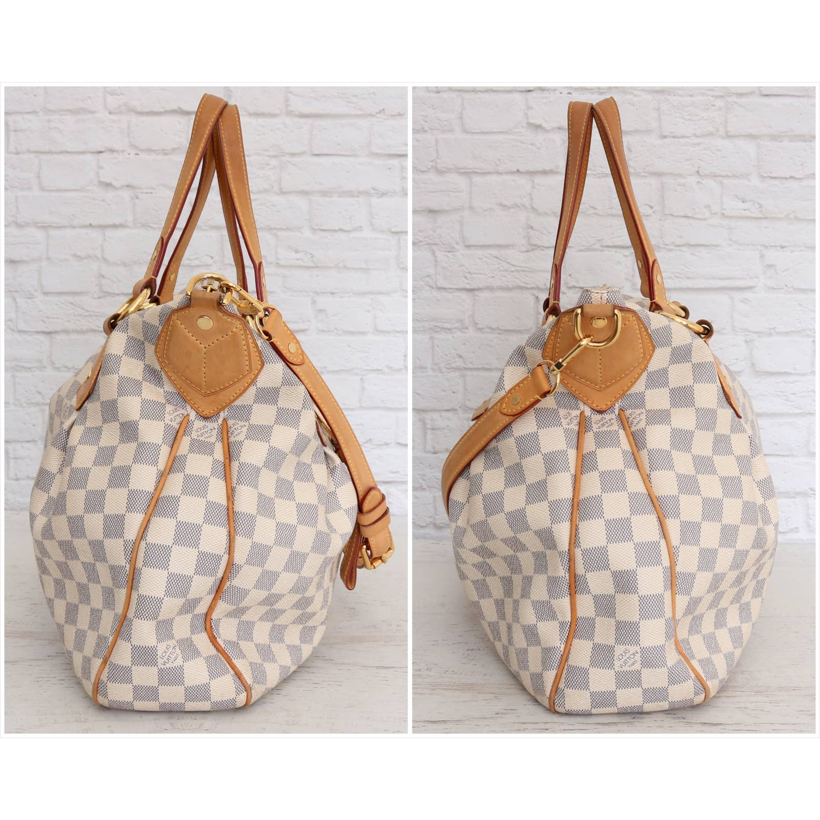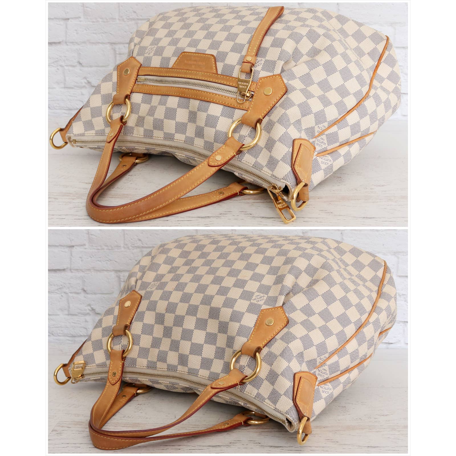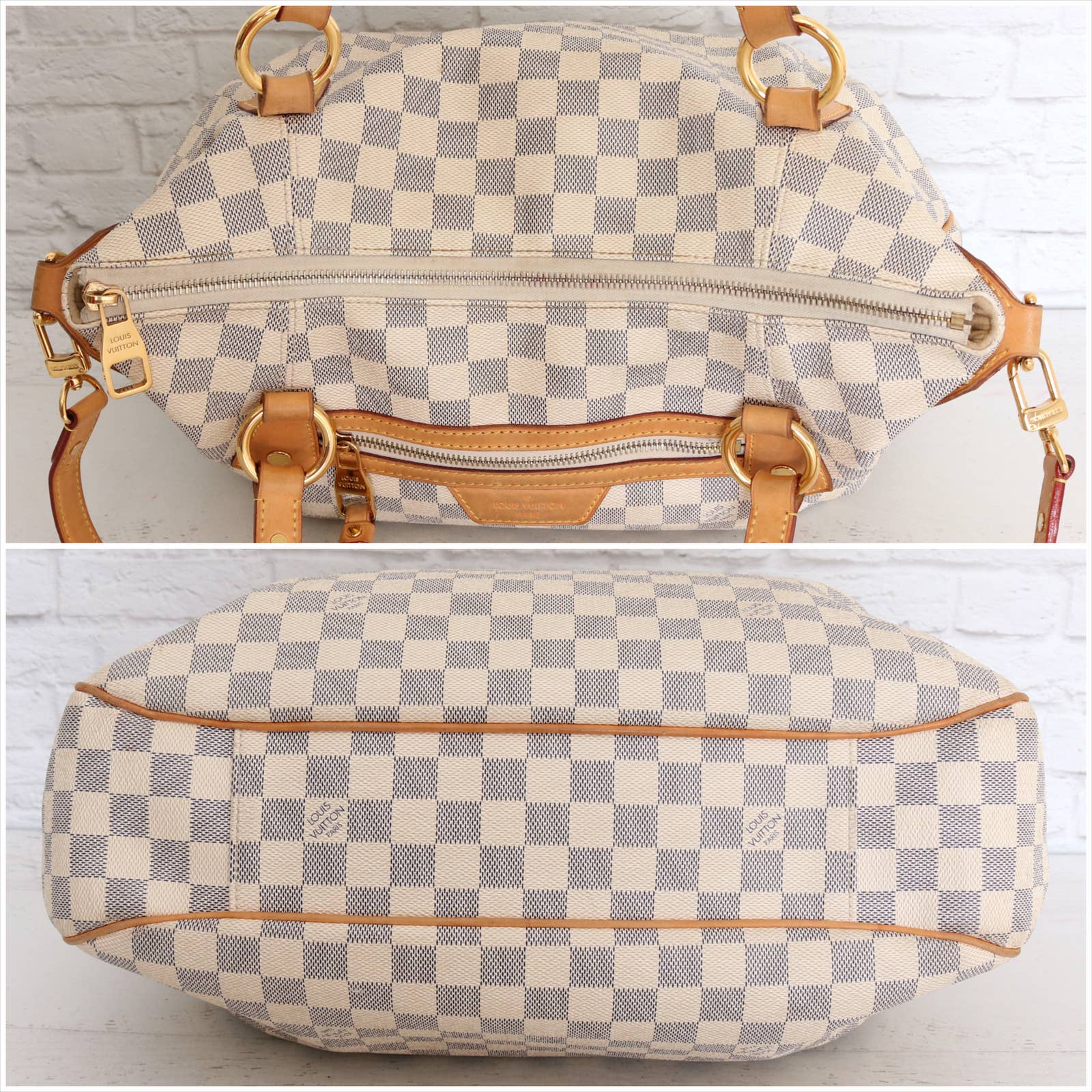Vachetta (handles & trim): Overall tanning with some areas darker than others. Light rubbing and wear throughout