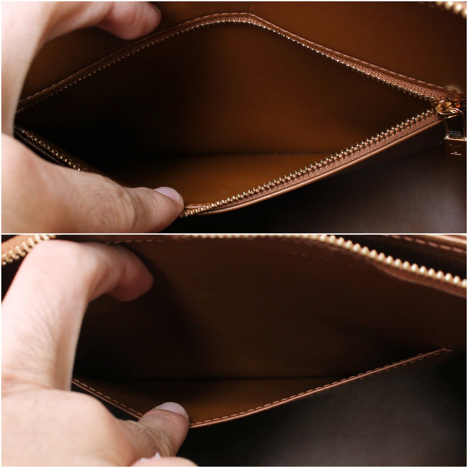Vachetta (handles & trim): Overall light tanning