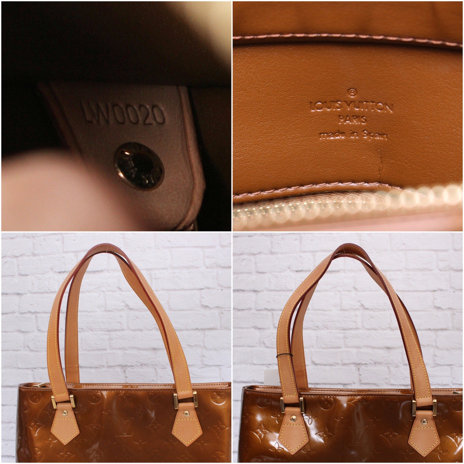Louis Vuitton Houston Caramel Vernis Satchel Shoulder Handbag Purse Tote A5121
