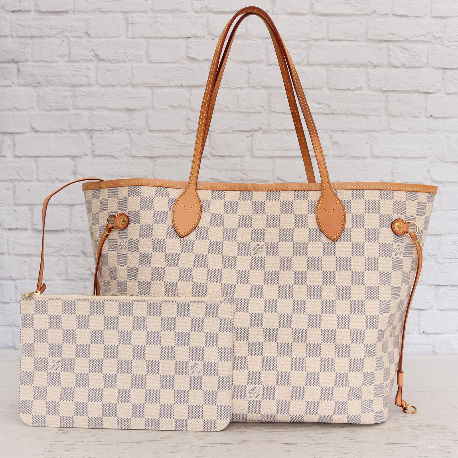 Louis Vuitton Neverfull MM Damier Azur Tote with Pouch in Beige Interior
