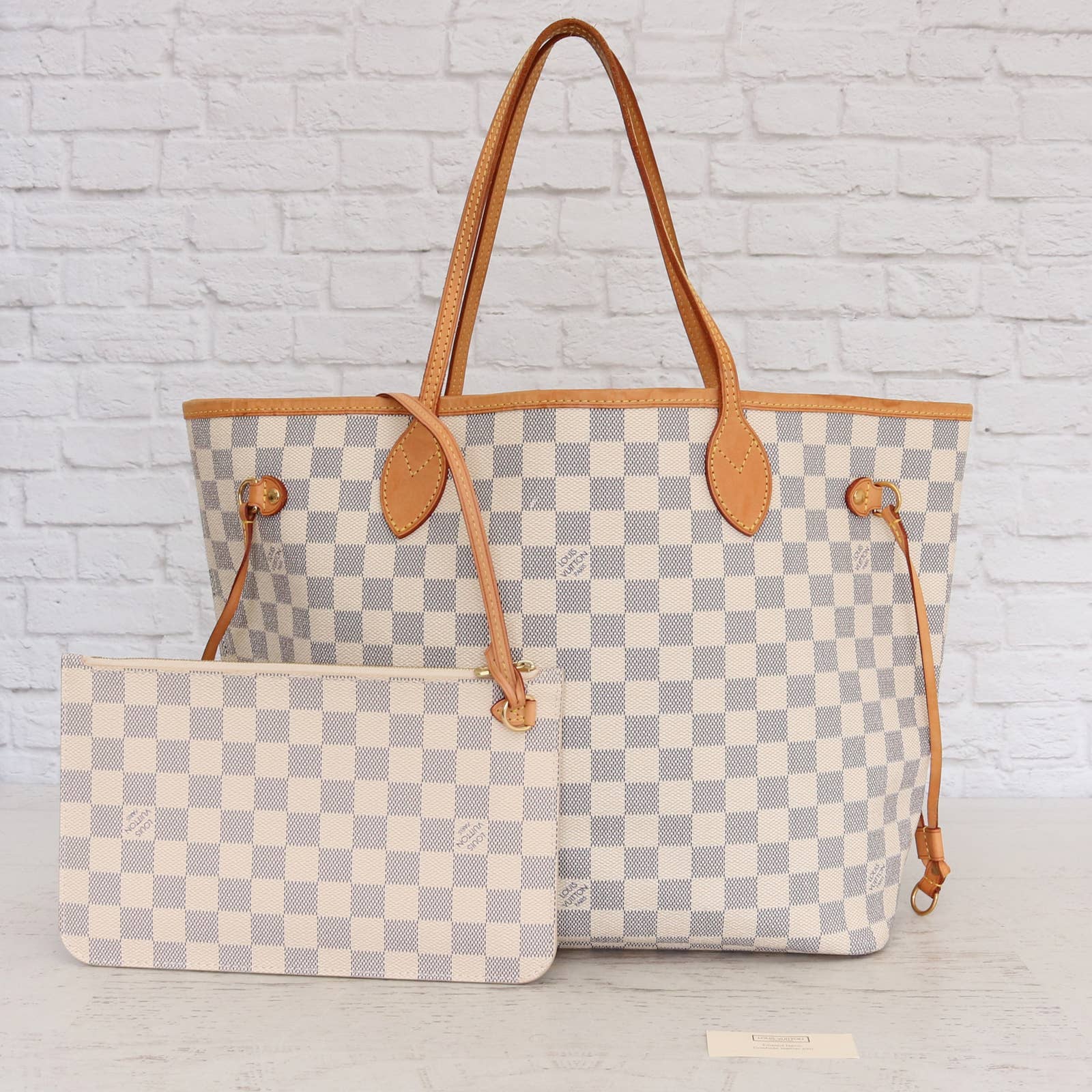 Louis Vuitton Neverfull MM Damier Azur Tote with Pouch in Beige Interior
