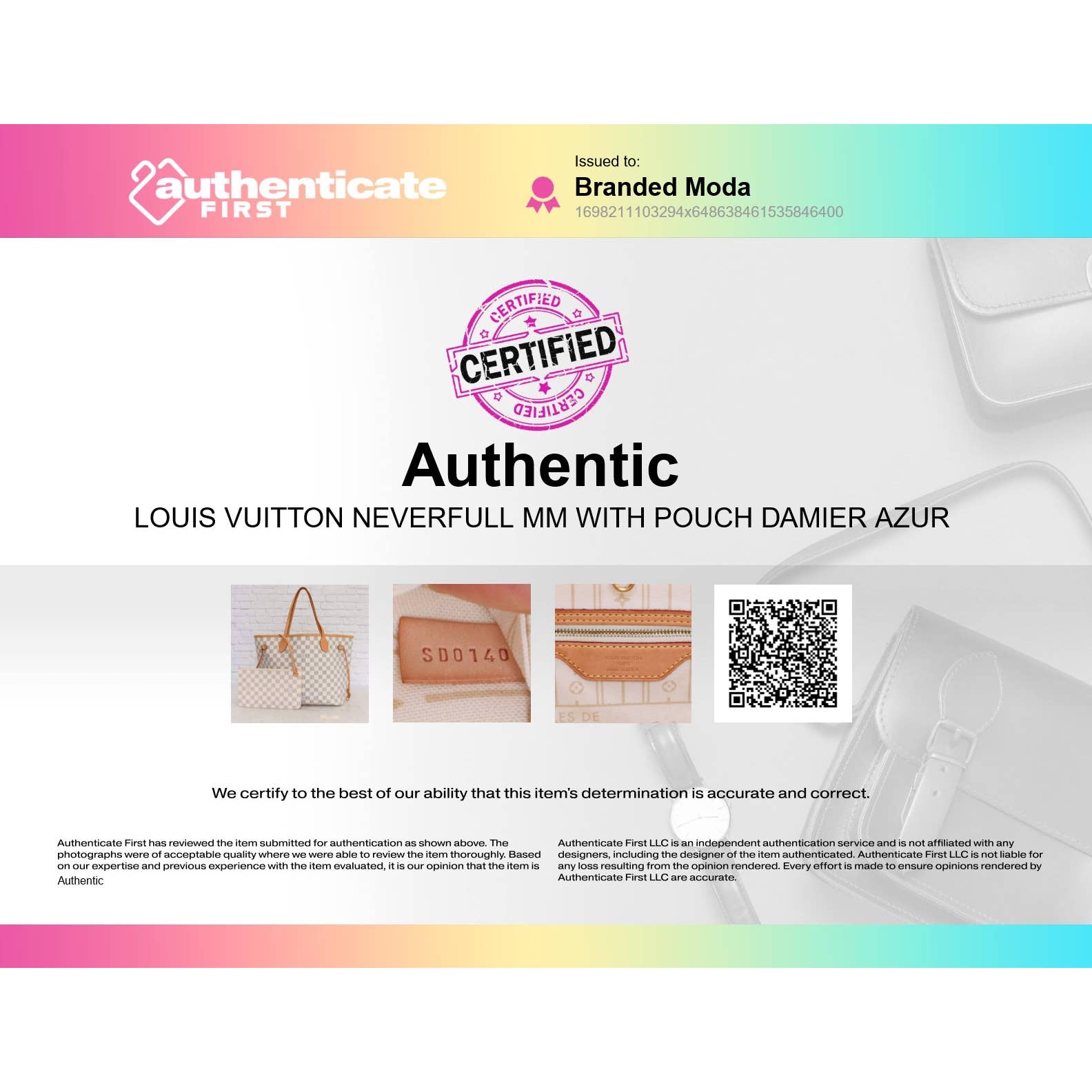 100% Authentic backed with our money back guarantee. Includes authentication by AuthenticateFirst, the leading Louis Vuitton authenticator (please see second image for Certificate of Authenticity and scan QR code to view authentication).
