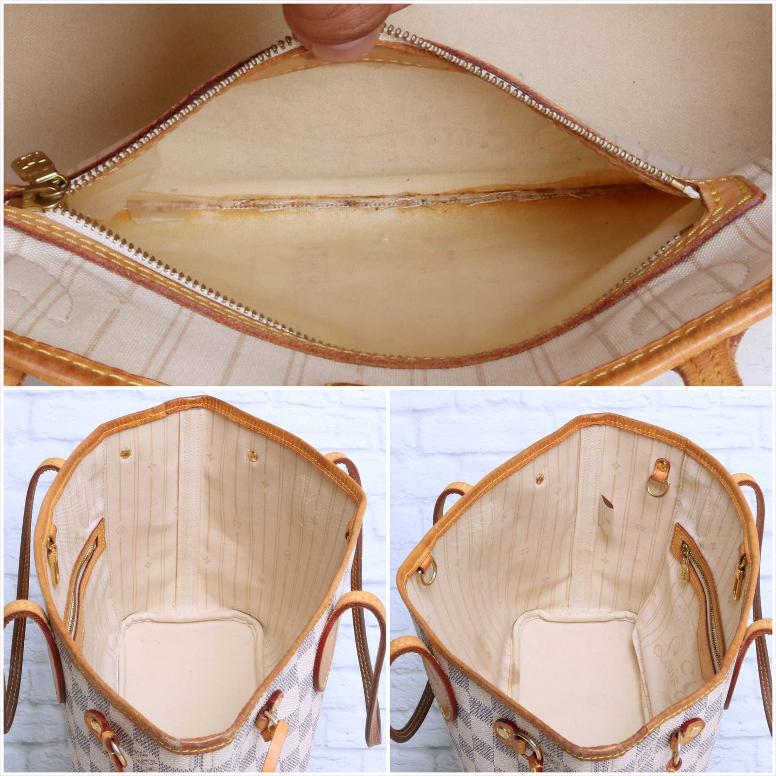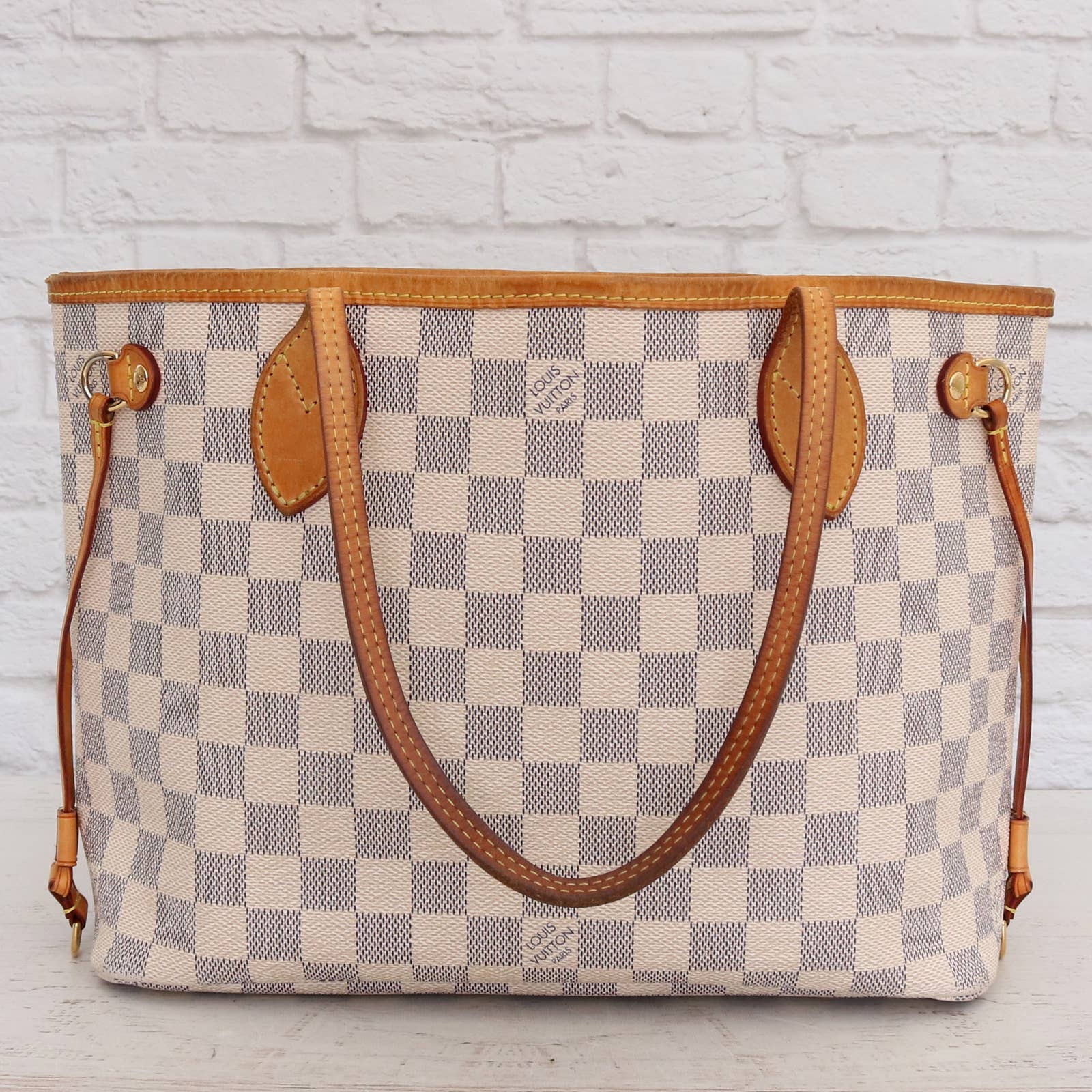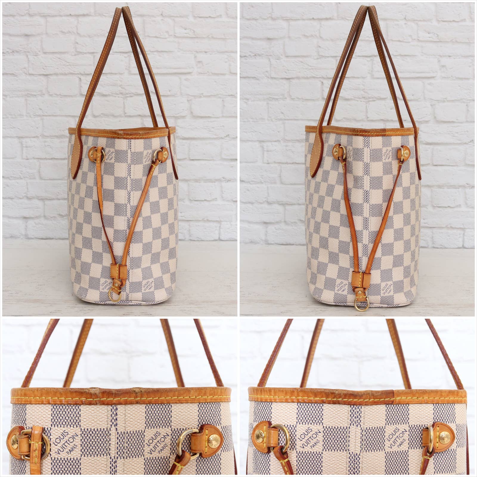 Louis Vuitton Neverfull PM Damier Azur Small Tote Shoulder Bag White