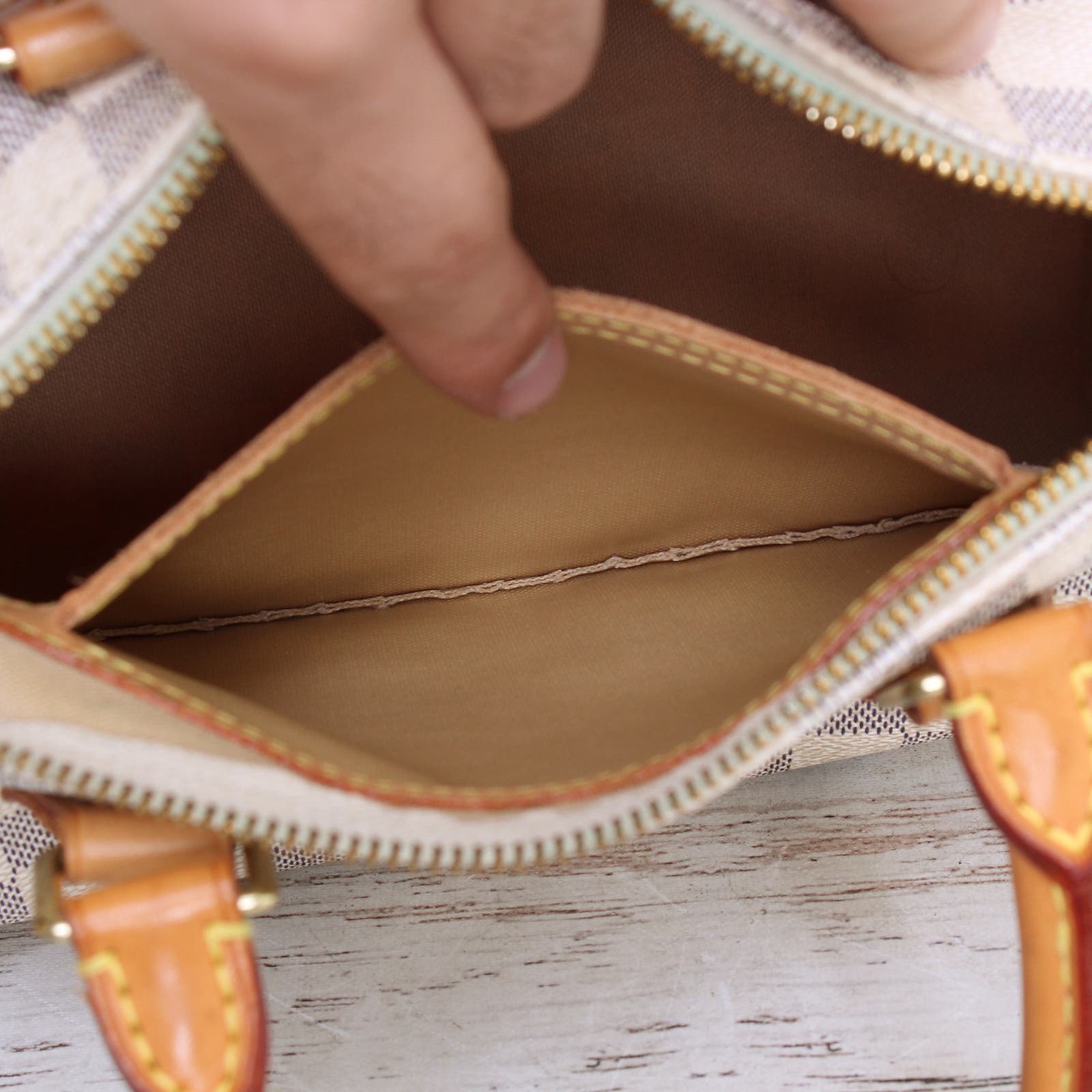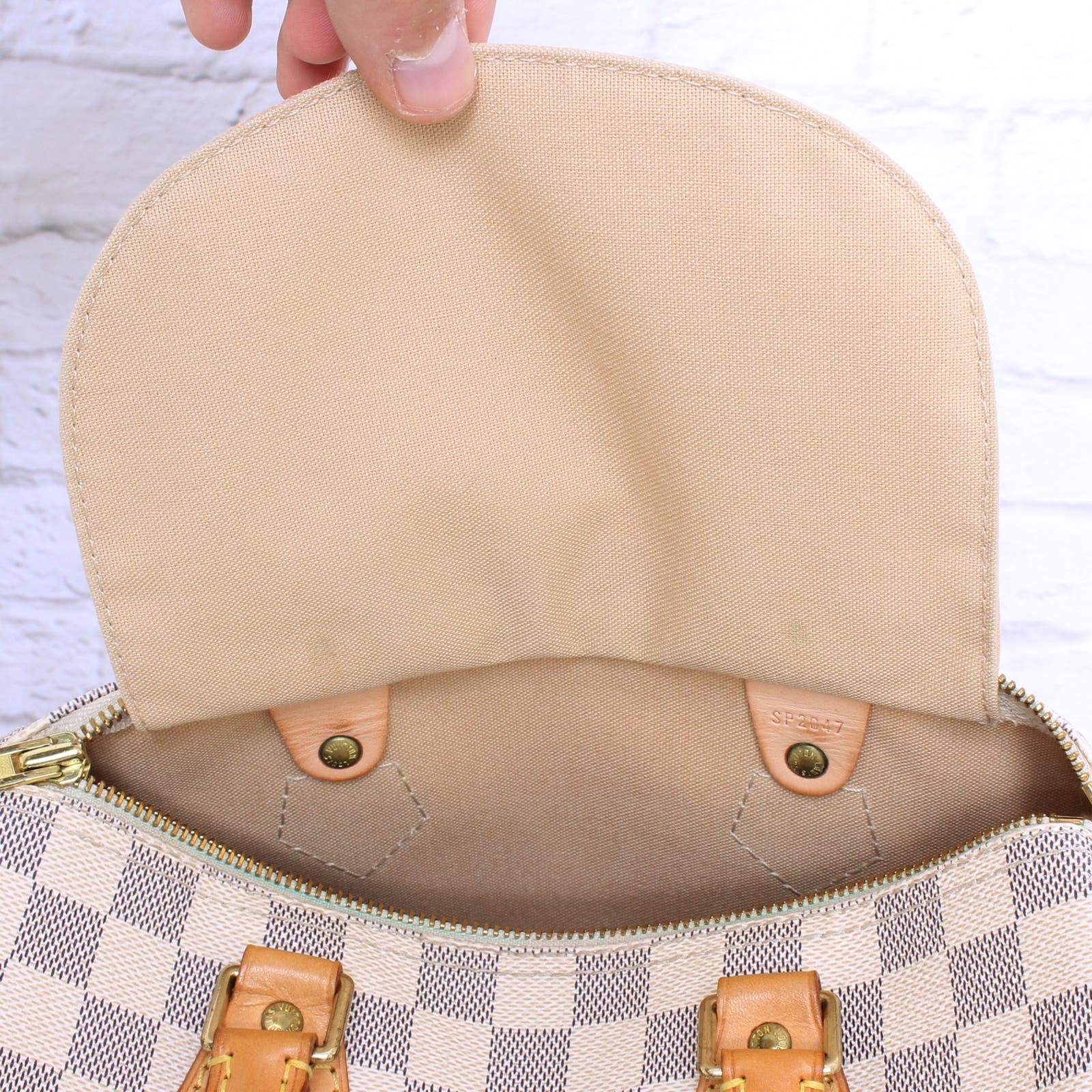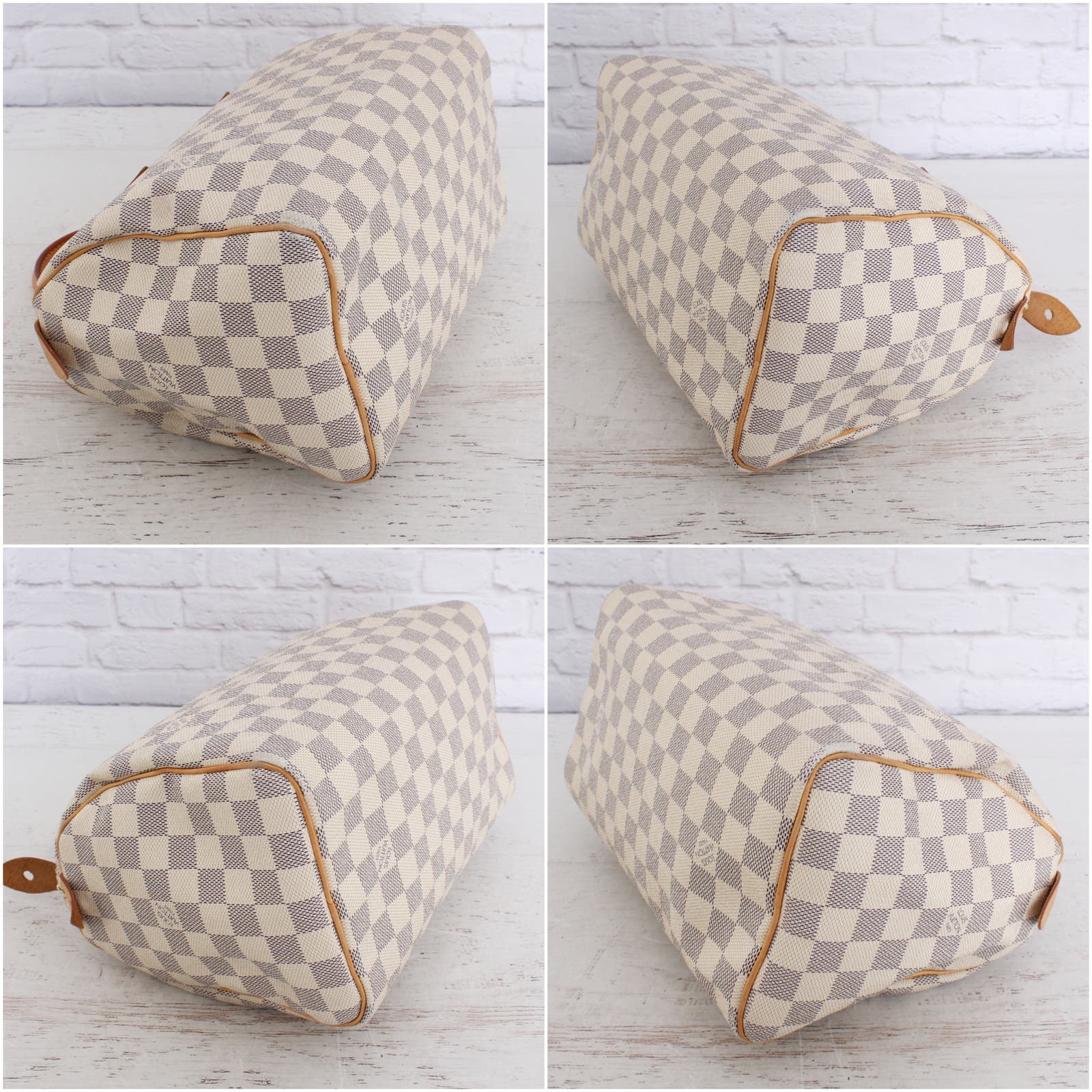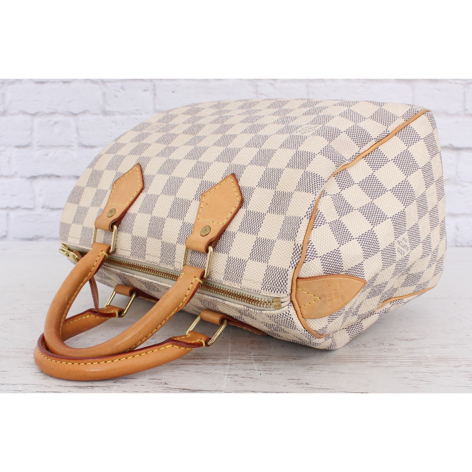 Louis Vuitton Speedy 25 Damier Azur Satchel Purse Handbag Leather Tote