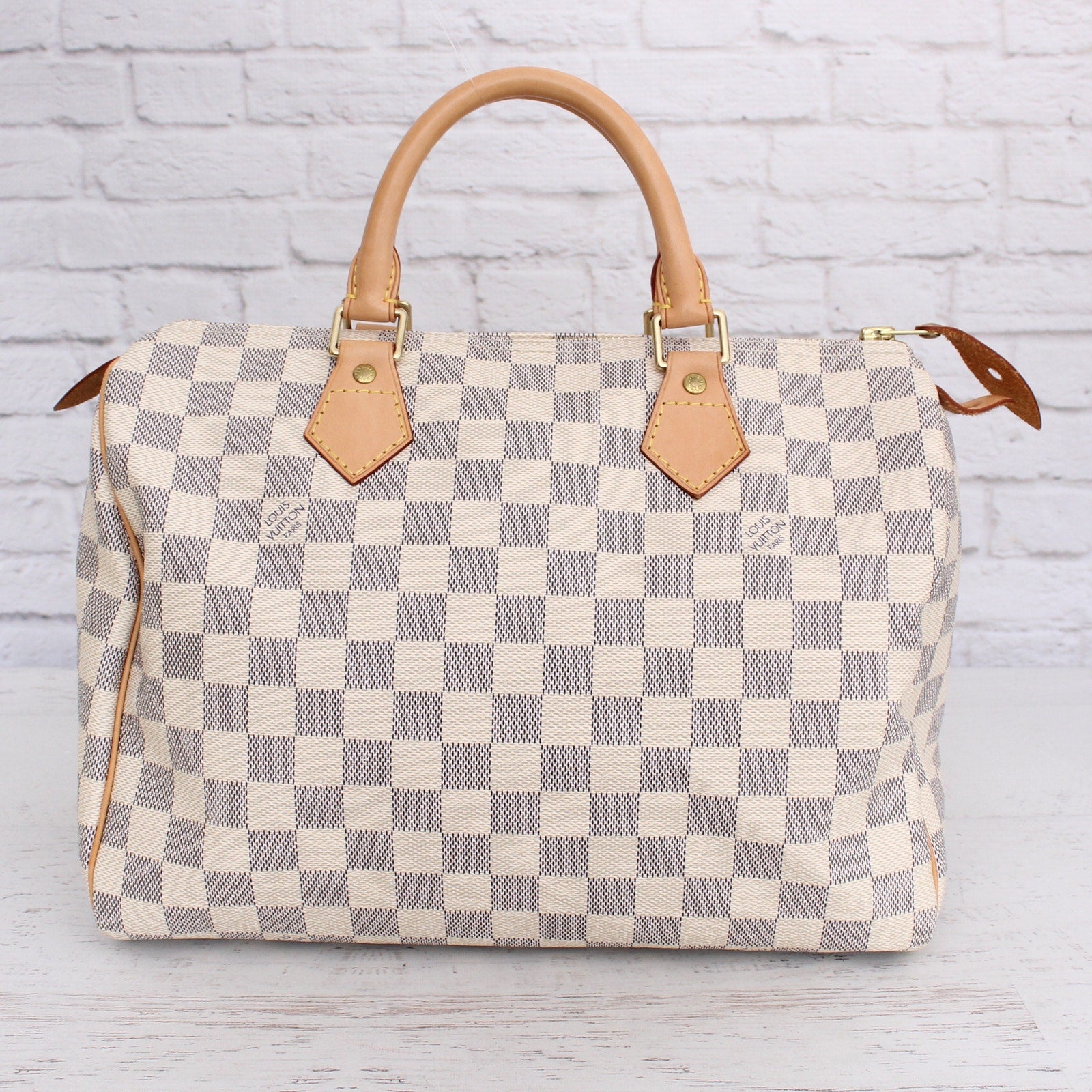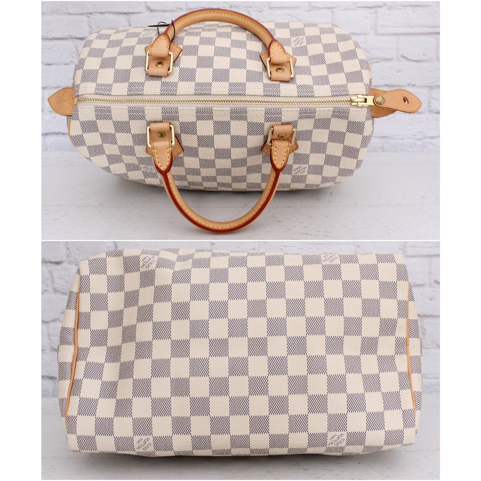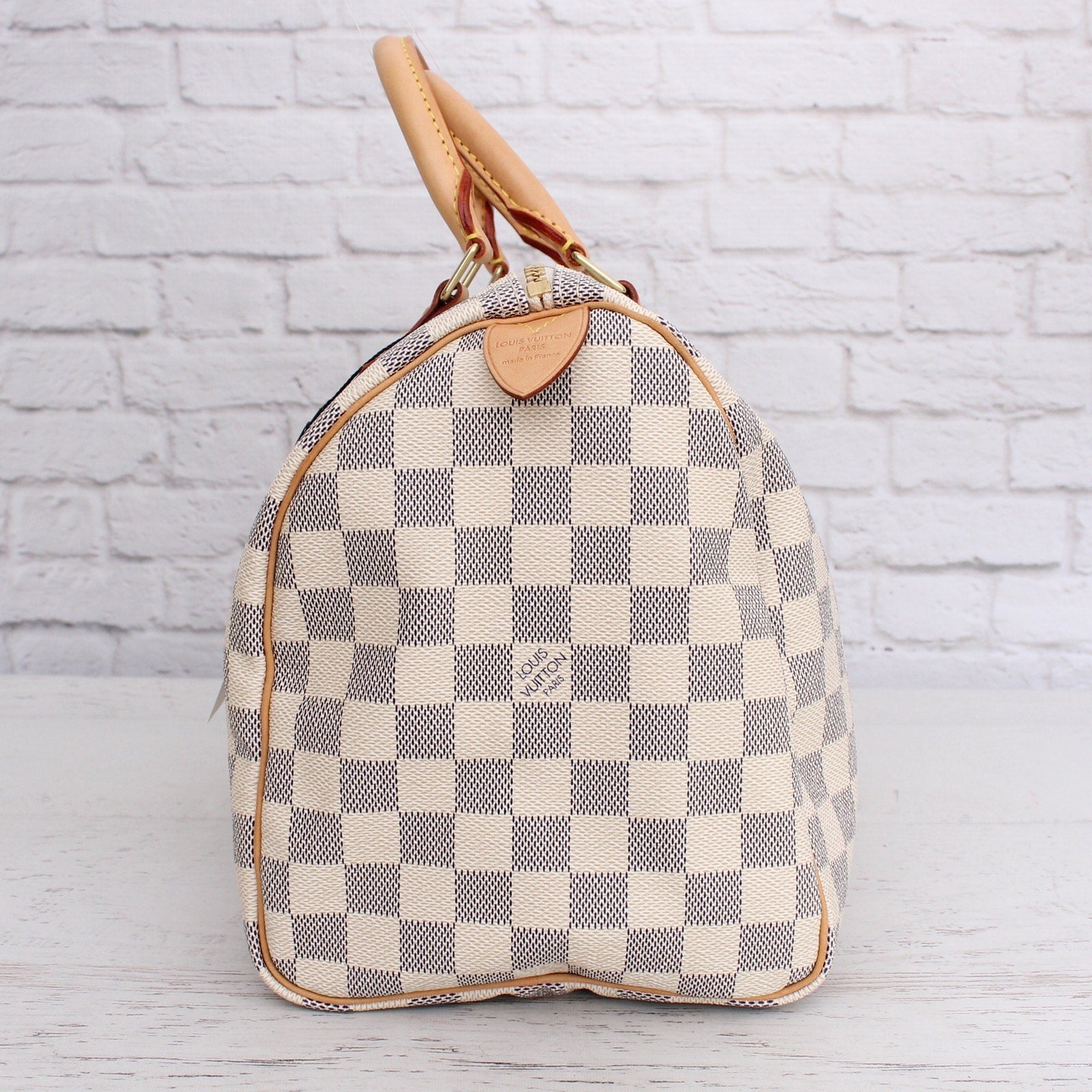 Louis Vuitton Speedy 30 Damier Azur Satchel White Boston Leather Handbag A5364