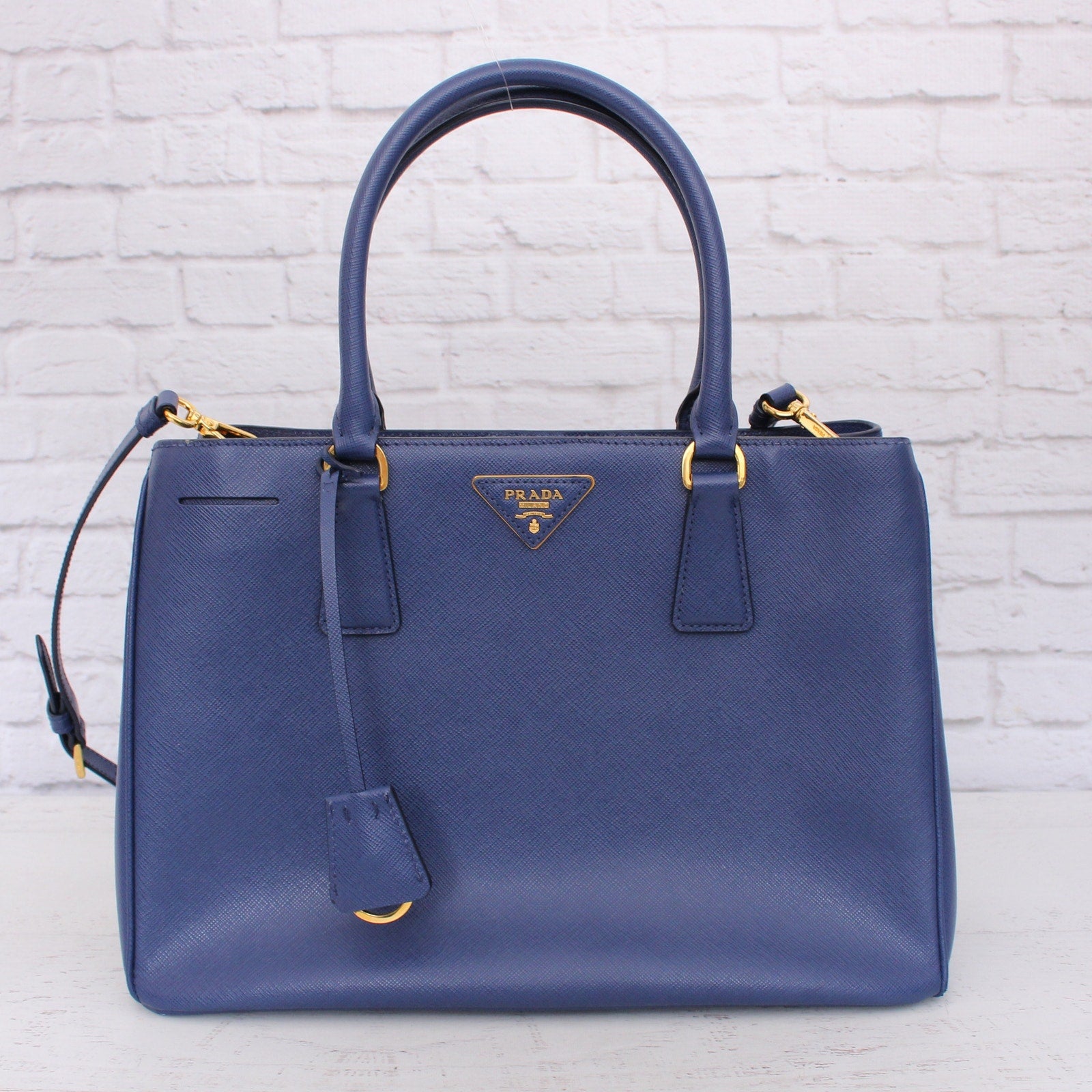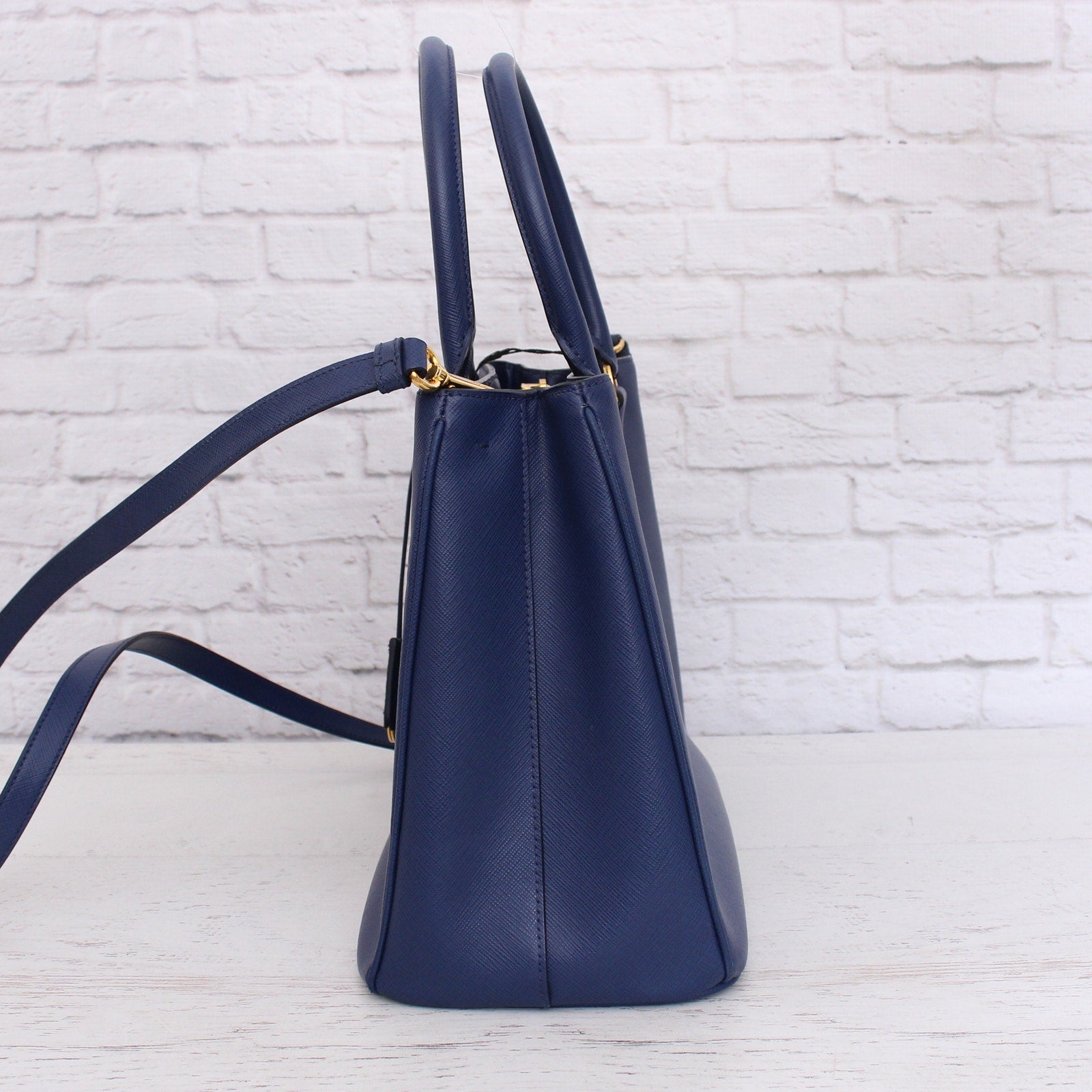 Prada Galliera Blue Saffiano Handbag with Leather Crossbody Strap