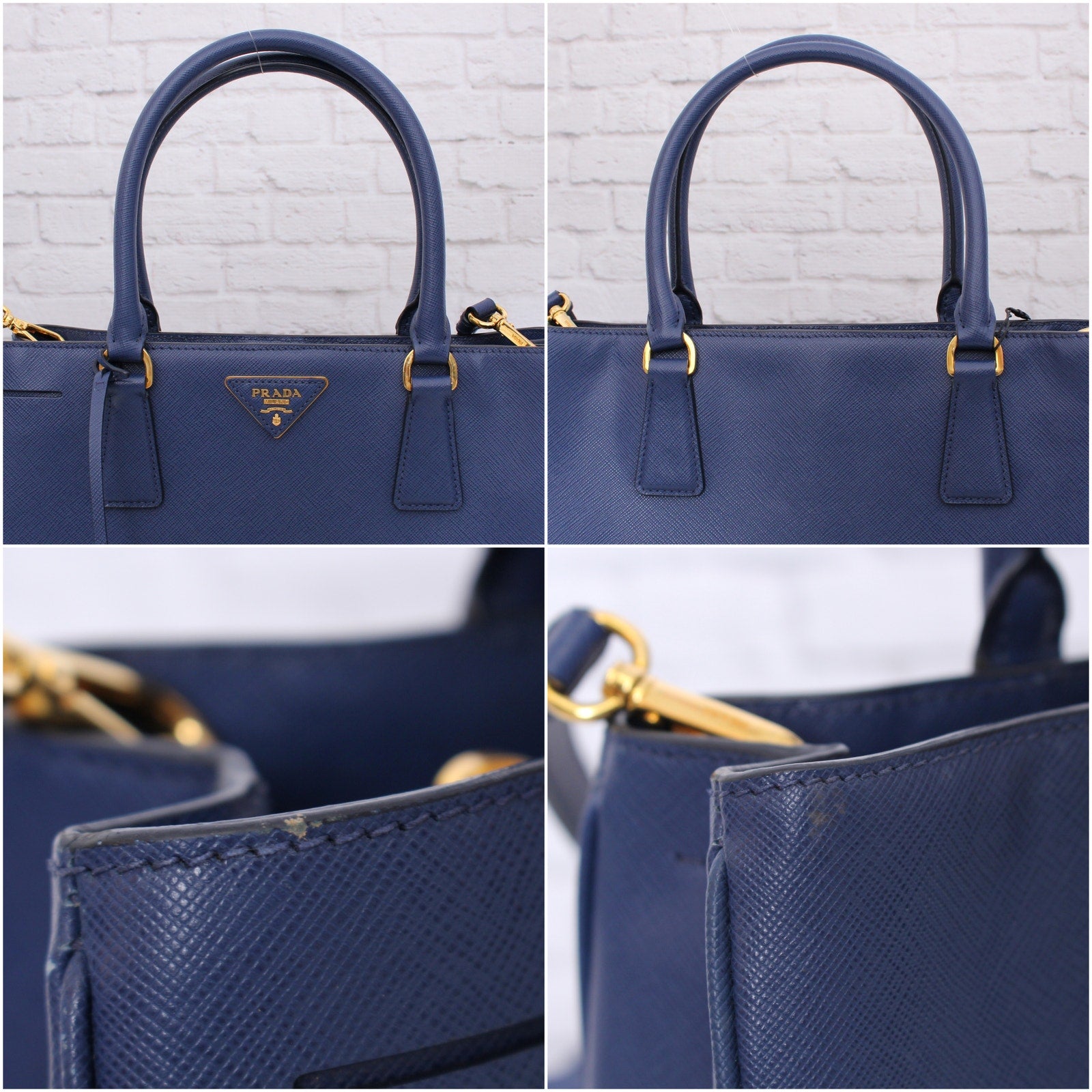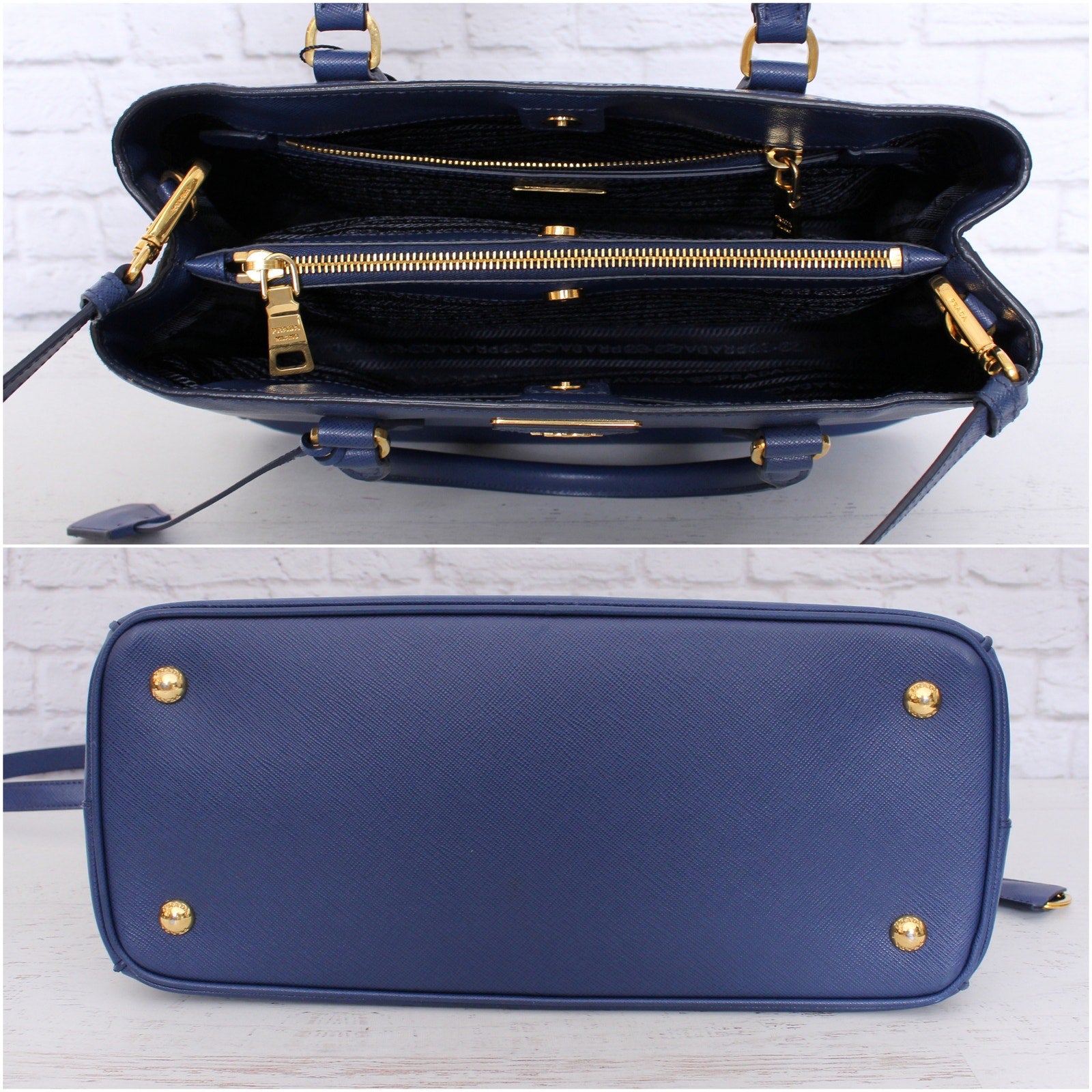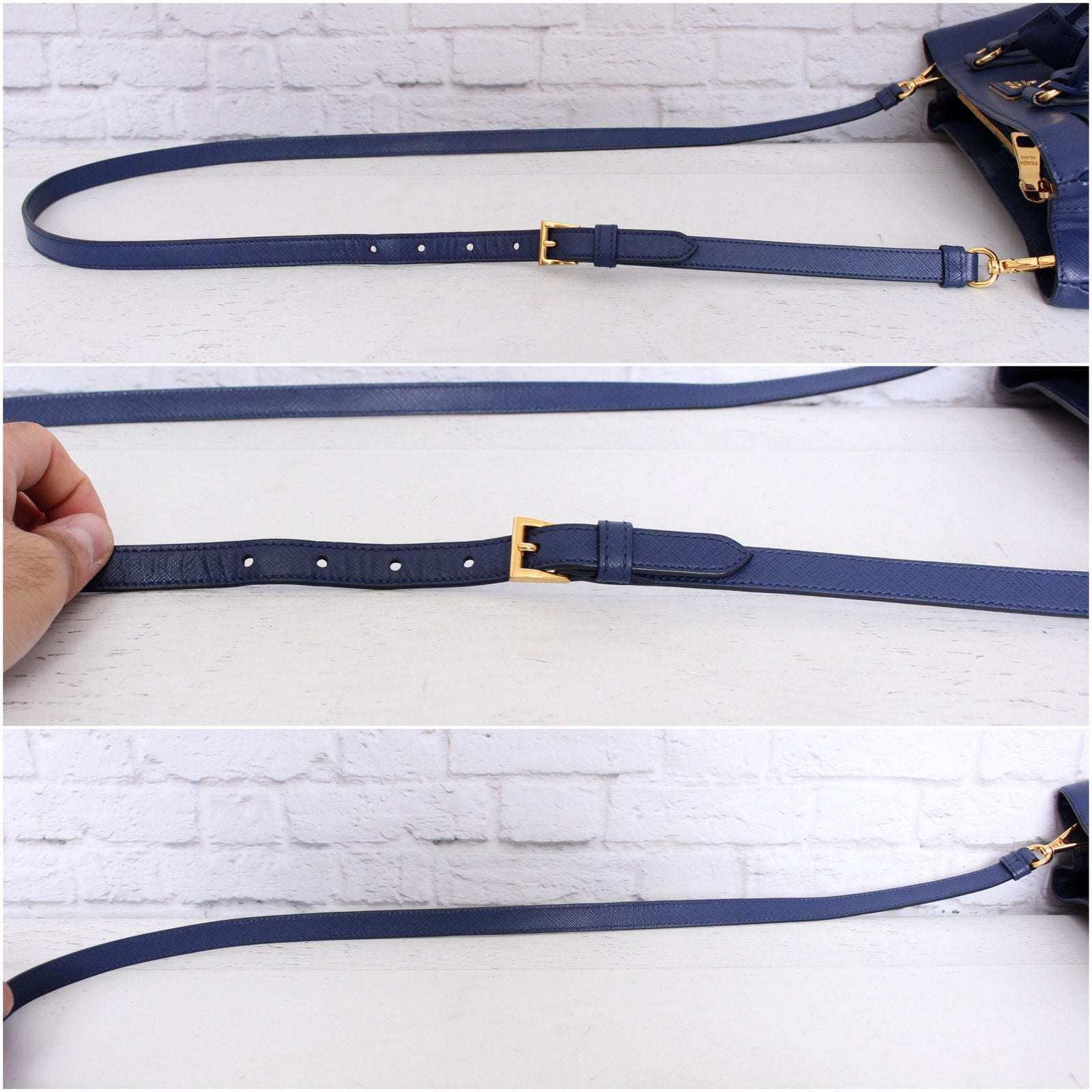 Prada Galliera Blue Saffiano Crossbody Leather Strap Satchel LV Purse A4939